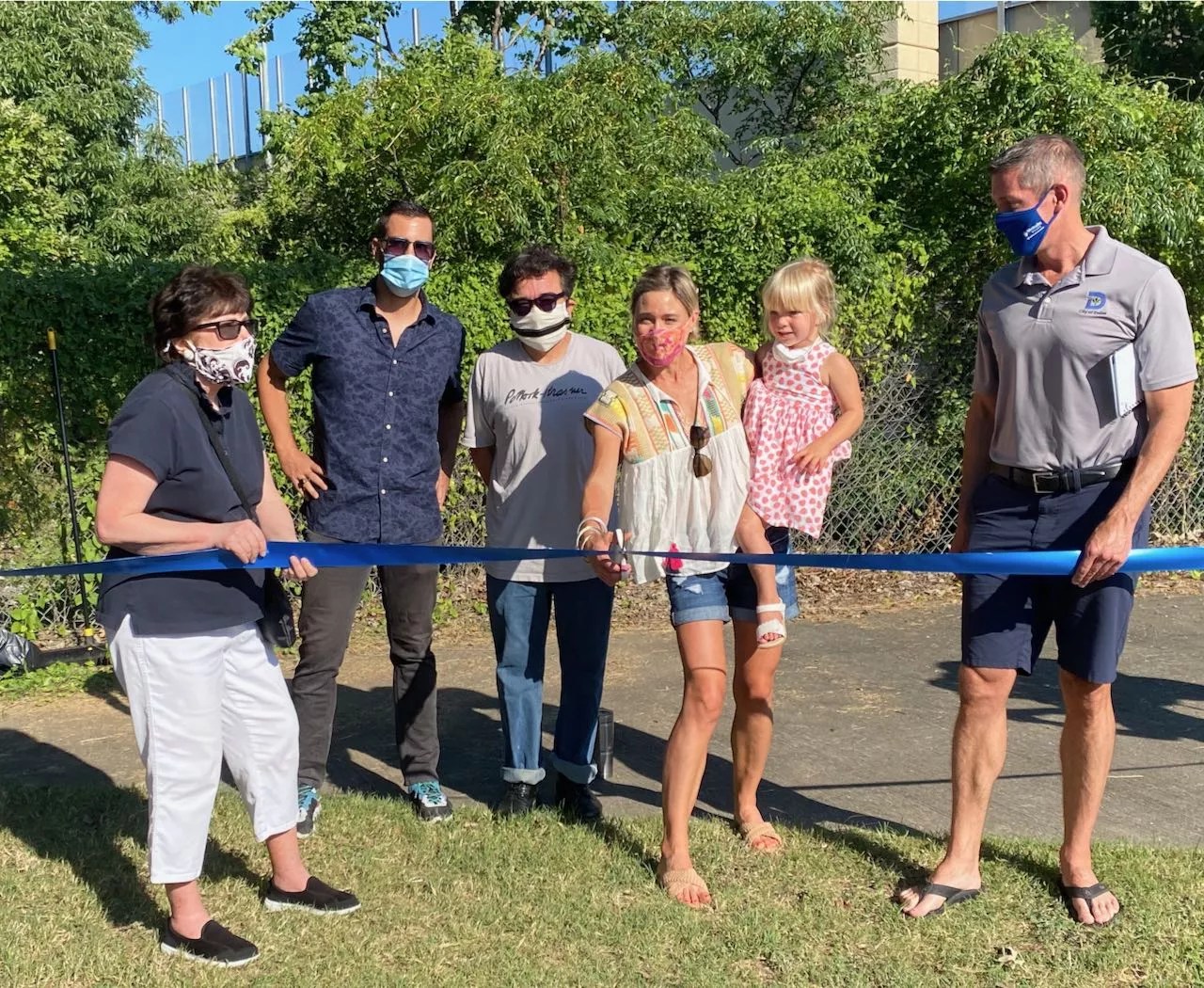 A group of community leaders, neighbors, police officers and firefighters gathered for the ribbon-cutting ceremony at the southwest corner of Kessler Parkway and Sylvan Avenue. Joggers glistening with sweat in the morning sun lingered long enough to figure out what the fuss was about before politely cutting through the crowd.