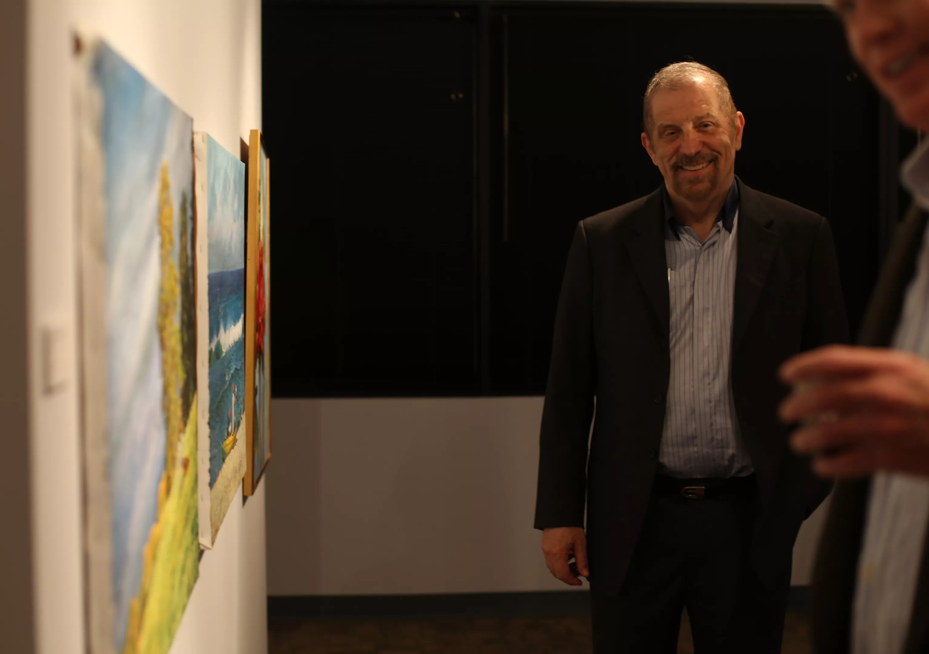 The modest gallery space, located on the third floor of an office building in Addison, currently houses Salomon’s work, a series titled Journey, along with paintings from various Russian art students he commissioned to recreate his photos as they felt inspired. But Katie Knight, the gallery manager, says they are eager to represent more artists in the future.