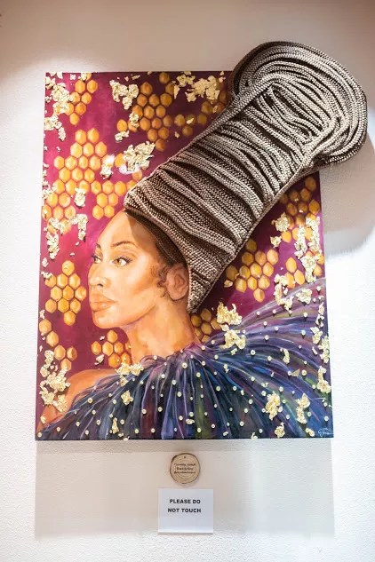 “Everyone who comes is affirmed through all seven artists’ work,” she says. “That’s the power of it. If you are not Black or you don’t have Black hair, you should see yourself among the work and learn about the hair experience in some form or fashion.”
