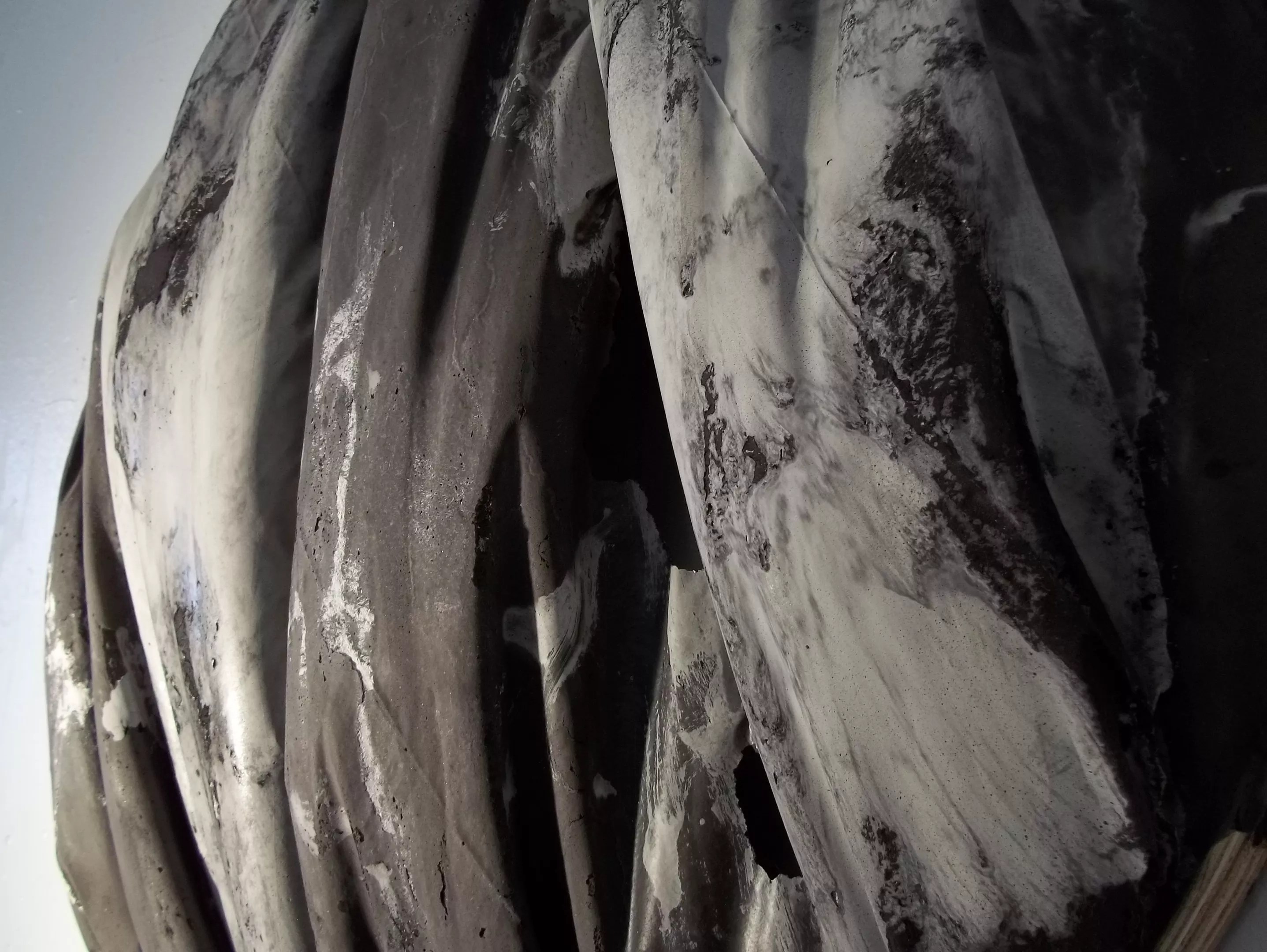 One series by Jardine is made from plastic bags that have been covered in concrete and charcoal.