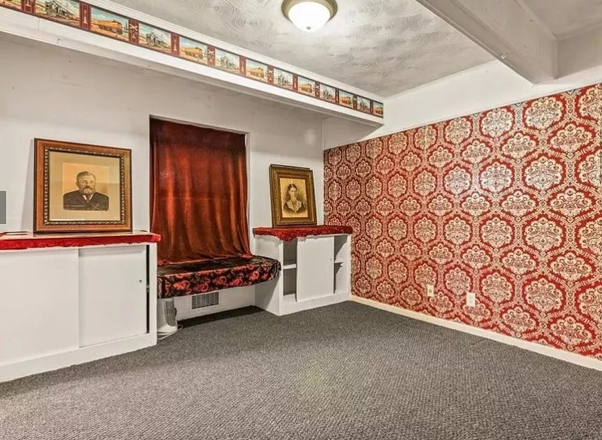 The home’s current owner Robert “Videobob” Moseley says they kept a lot of the home’s original 1960s style wallpaper to contribute to their eclectic plans for the interior.
