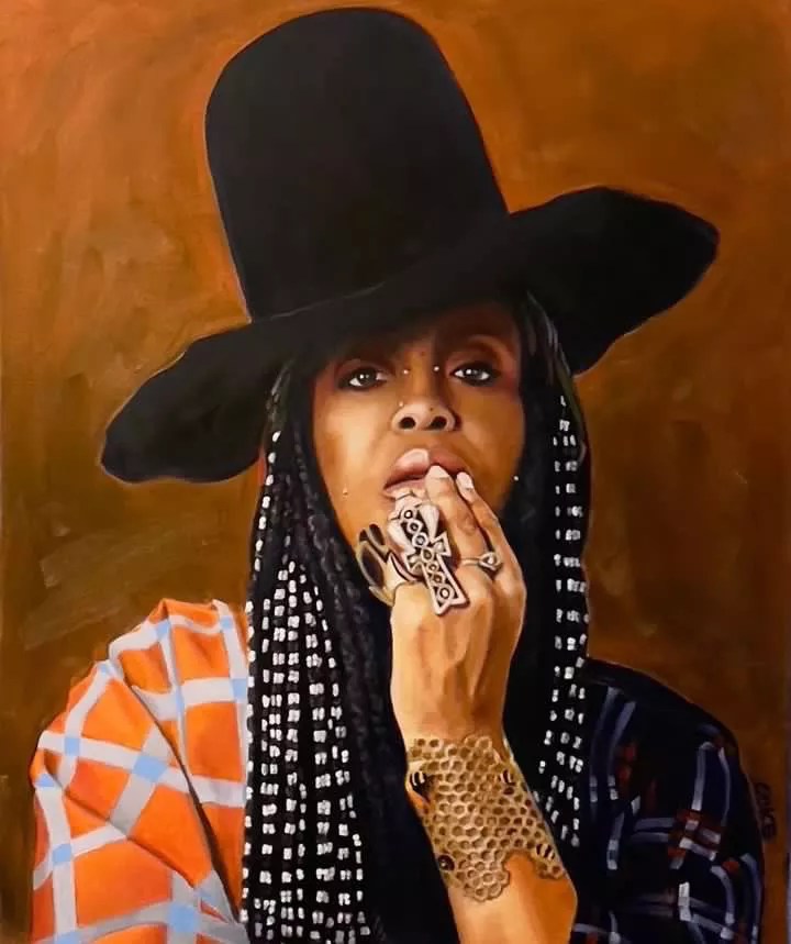 Wes Coke’s portrait of Queen of Neo-Soul Erykah Badu is one of the 15 portraits in the Arlington exhibition.