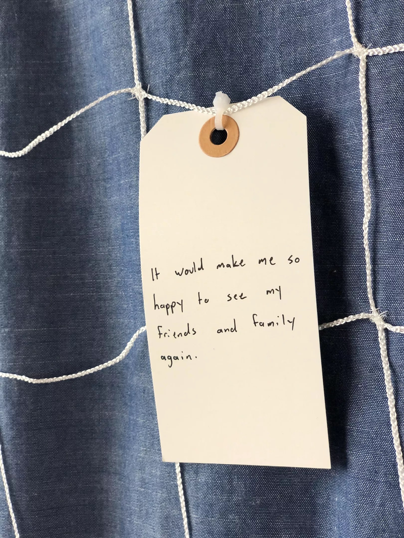 Some of the notes read “I want a less polarized world,” “I wanna be valued. I want to live a life of purpose,” “I want people to know I love them.” One simply reads, “I just wanna hug my dad.”