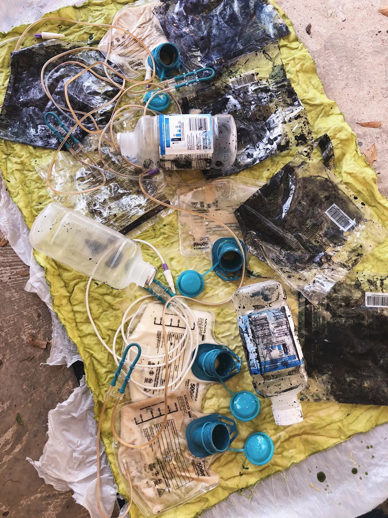 “This process uses potassium ferricyanide, ferric ammonium citrate and water to create a UV-sensitive surface,” she says. “By utilizing the daily waste material, including elemental formula and the plastic packaging of a person with a disability, I am able to speak to a specific type of consumption that our society often deems wasteful.