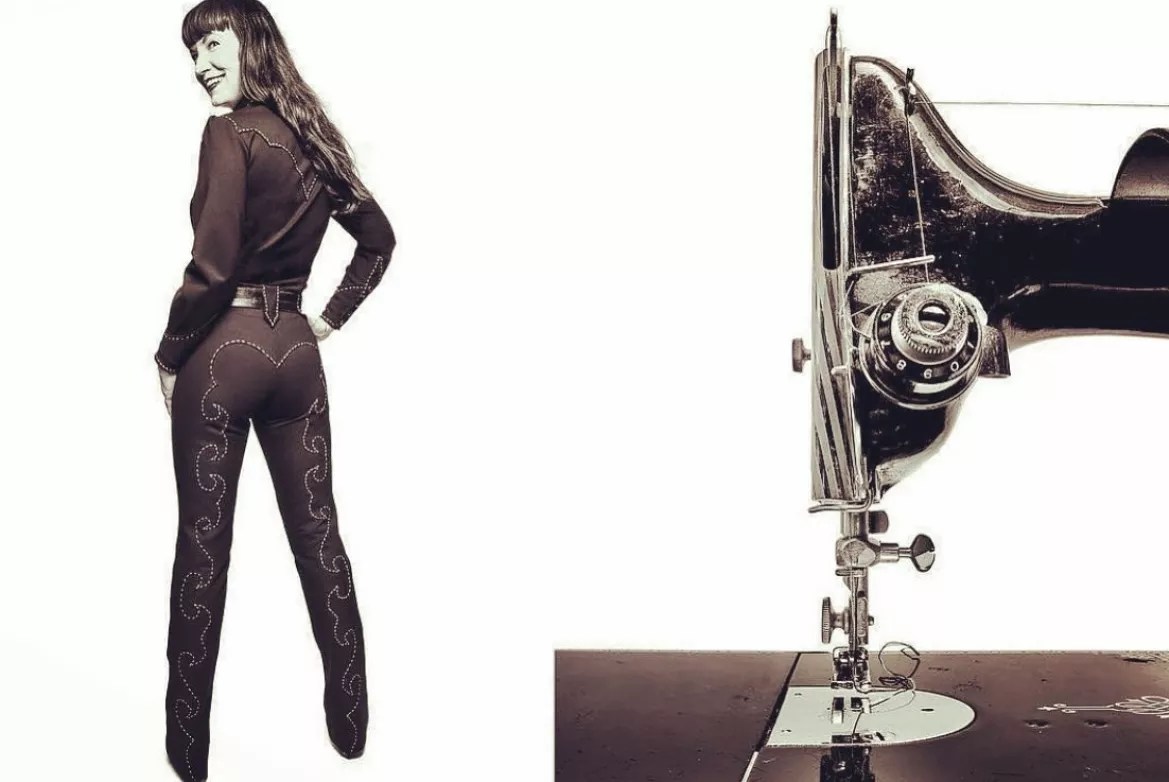 As the wife of the rockabilly artist The Reverend Horton Heat, Andrea Heath was always fond of the look. Finding herself with many events to attend (and nothing off the rack to wear), she decided to sew curve-hugging cowgirl styles based on vintage patterns, with topstitching and detailing added by hand.