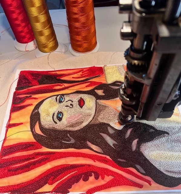 As she adds to her files of fun fonts, old-school tattoo art and cowboy imagery for future projects, the artist has a straightforward goal: to share the blending of craft and human ingenuity that made the chain stitching machine possible.