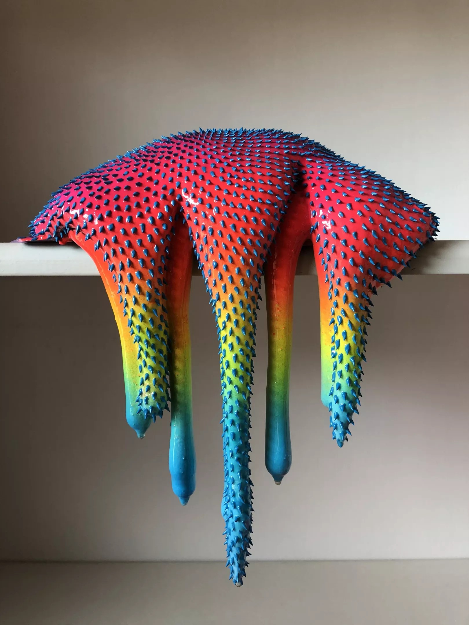 To create her “drips,” “blobs” and “squishes,” Lam uses polyurethane foam and acrylic resin. Because of the materials’ various curing and drying times, Lam is able to work on more than one project at a time. Finishing one can take three to four days or, for something bigger, up to a week.