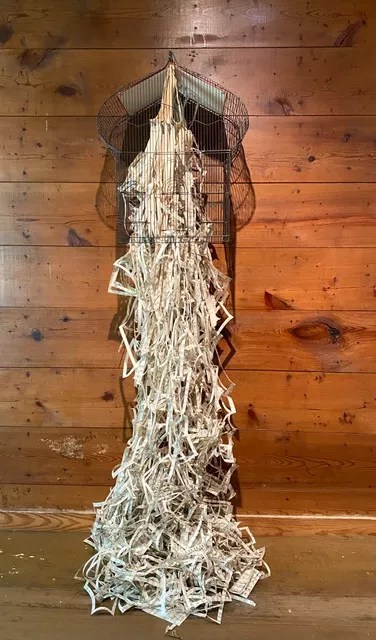 “I look at what I do as protest art,” she says. “It’s quietly protesting a world that is rushed and clashes with the enchantment of the everyday. To bring things people have saved back and look at them in a different context goes back to that same feeling I had as a little girl walking in the marsh. It’s saying, ‘Hold on, look at the ordinary world’ and see what’s underfoot. Somebody might say they’re just old things, but if you look at [the final result], it’s a symbol. It’s poetry.”