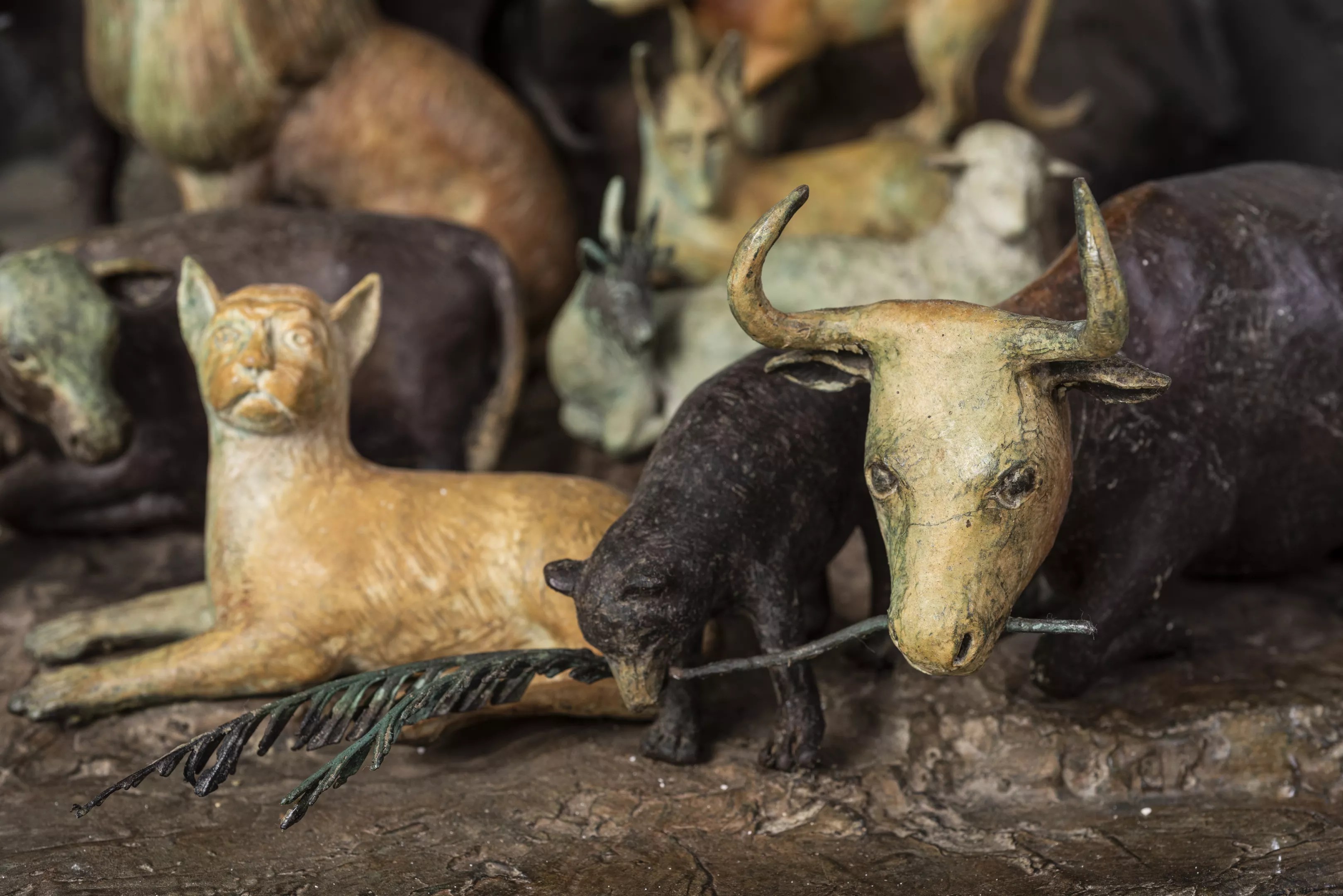 Detail of Harry Geffert’s “Kingdom.” Cast bronze with patina (1996).
