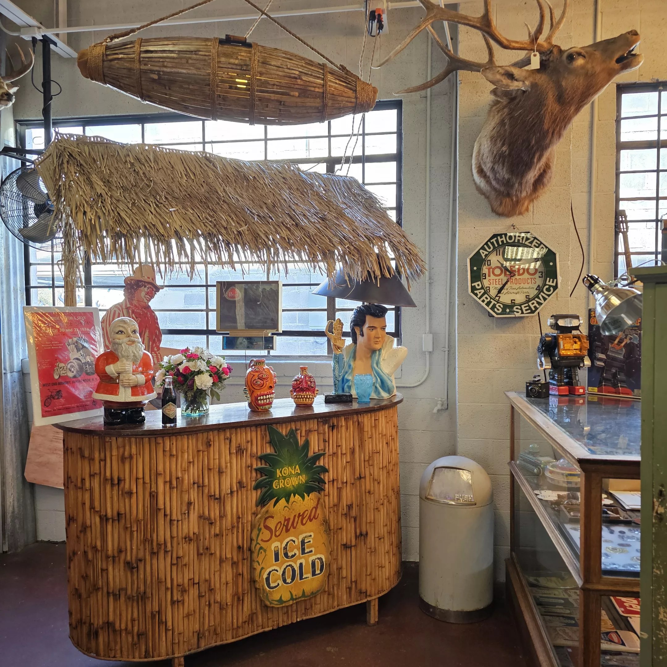 You’ll find lots of goodies at Curiosities the Garage. Sadly, the tiki bar is not for sale.
