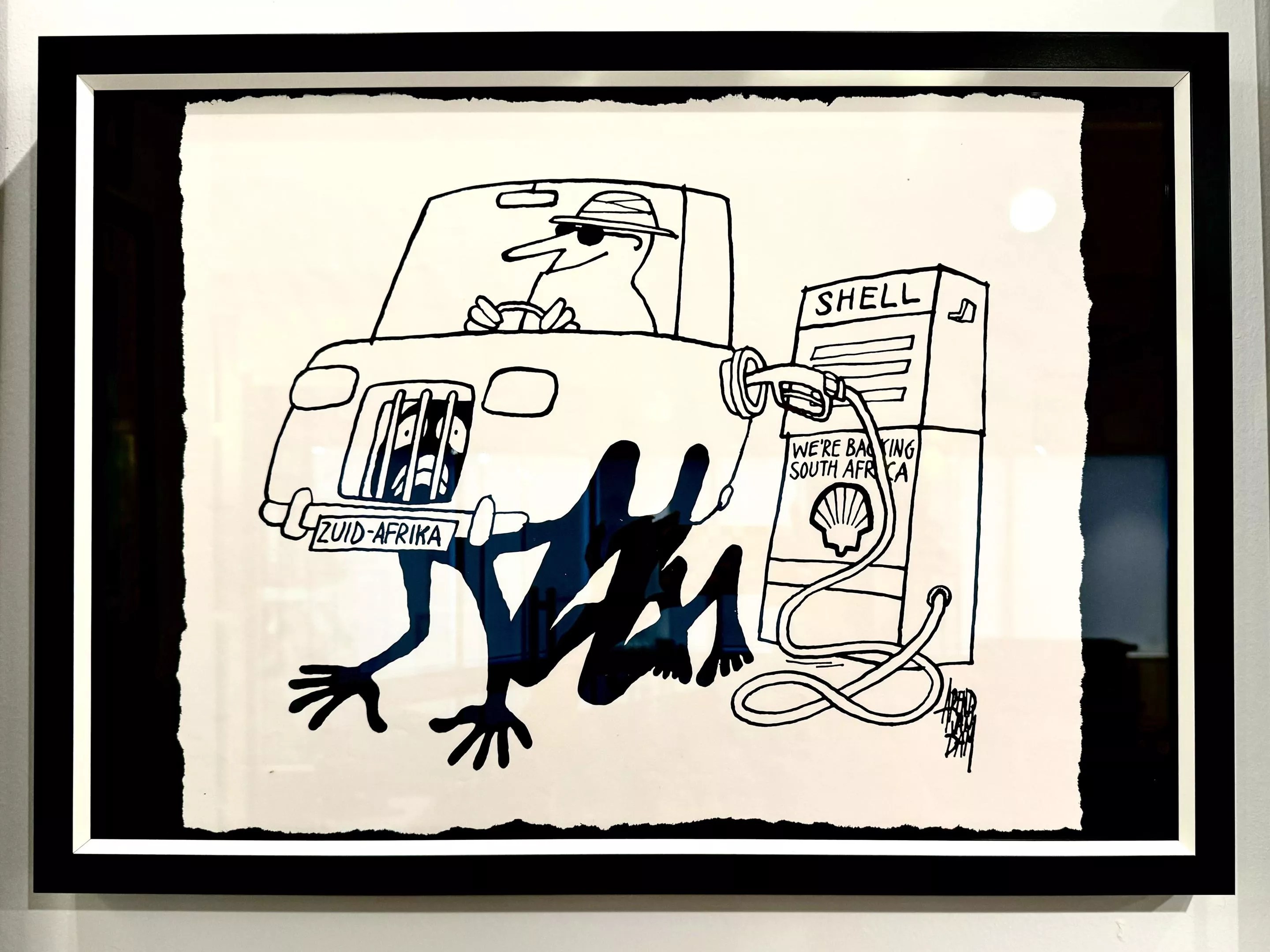 “What’s amazing is these [pieces] are translated in other languages and used around the world,” Dunn say, pointing to a 1950s comic strip later translated into Arabic and Persian to support nonviolent protests in the 2010 Arab Spring.
