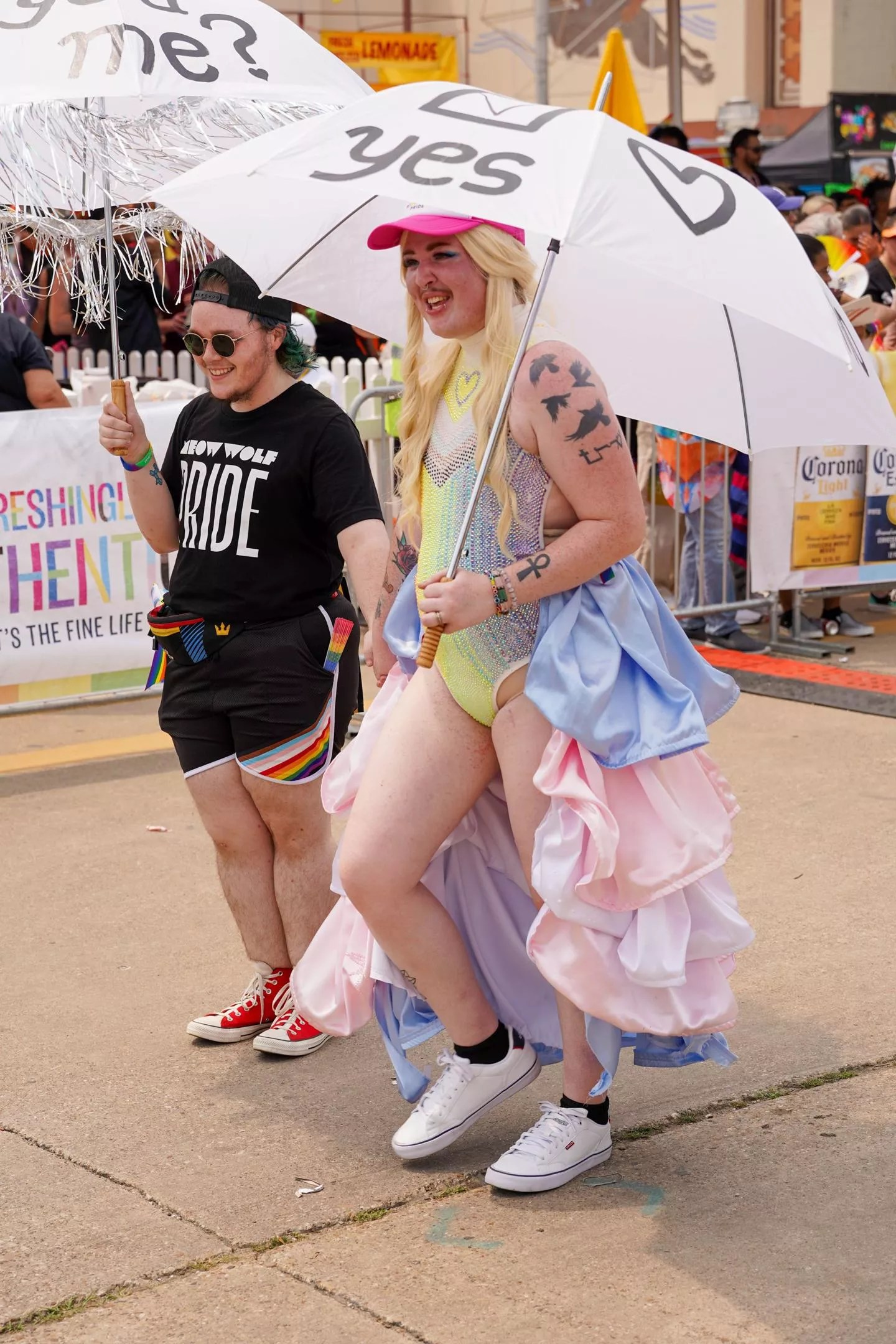 The highlight of the entire month is no doubt the parade, or in Dallas’ case, parades. These events bring the community together, with creative floats from queer-friendly businesses, local groups and (debatably) socially conscious corporations. This celebration gives queer people a safe space to kiki, network and wear the tiniest shorts they can find in their closet. We compiled a list of our favorite looks and moments at Dallas Pride.