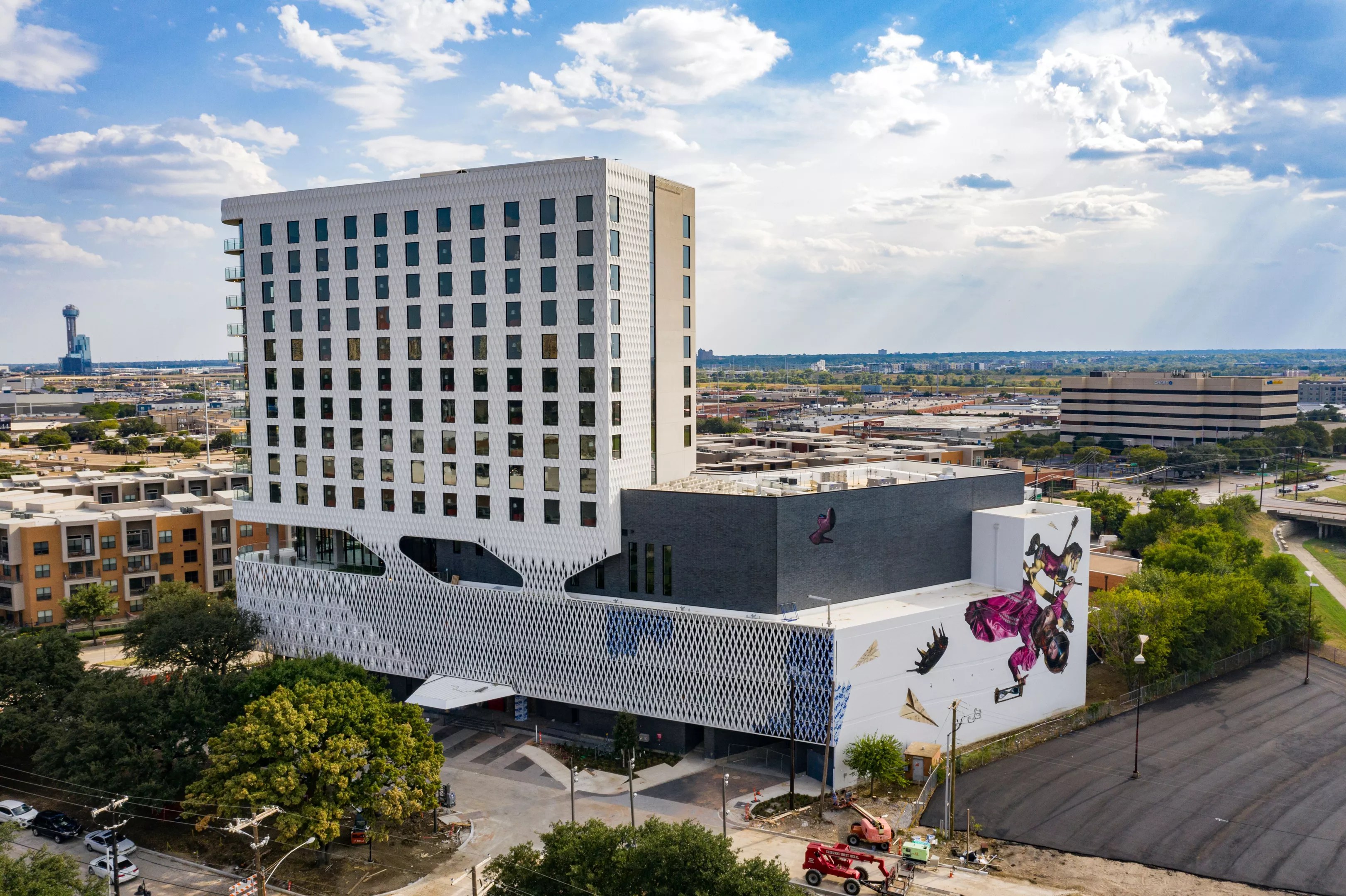 Drew Merritt has been a busy man since returning to Dallas to complete work on a new mural for the Virgin Hotel, in a little over four weeks before moving on to another project – a parking garage at The Realm and Castle Hills in Lewisville.