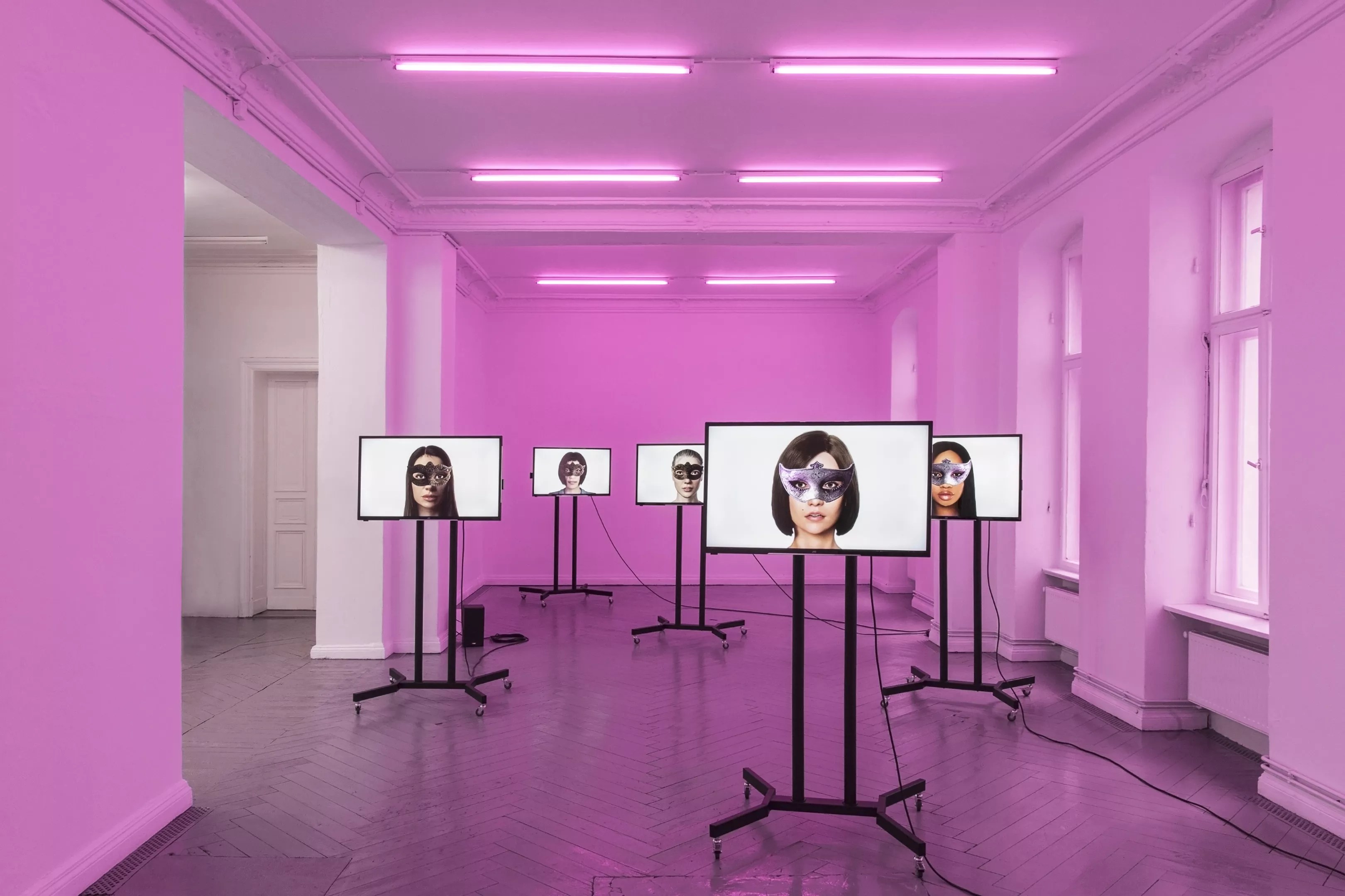 “Kristin Lucas is creating this lovely experience with flamingos and elevating the human experience with the bird’s experience through technology, but there’s also a lot of work talking about the effects of how harmful technology has been to the environment,” says Hearst of her curatorial dichotomy. “I tried to keep both sides active throughout the show. I really feel like, just in our relationships with screens, there are good and bad moments. Screens connect us with each other, but they’re also a space where hate can fester.”