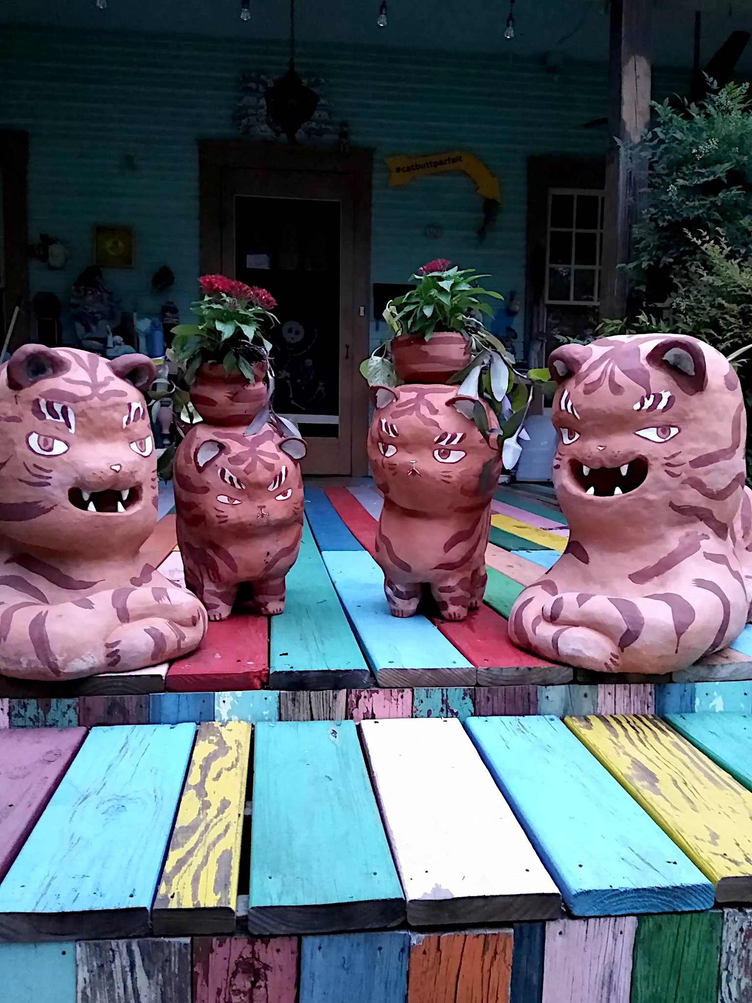 Scott is particularly excited about Mylan Nguyen’s quirky ceramic pieces, which take over the porch.