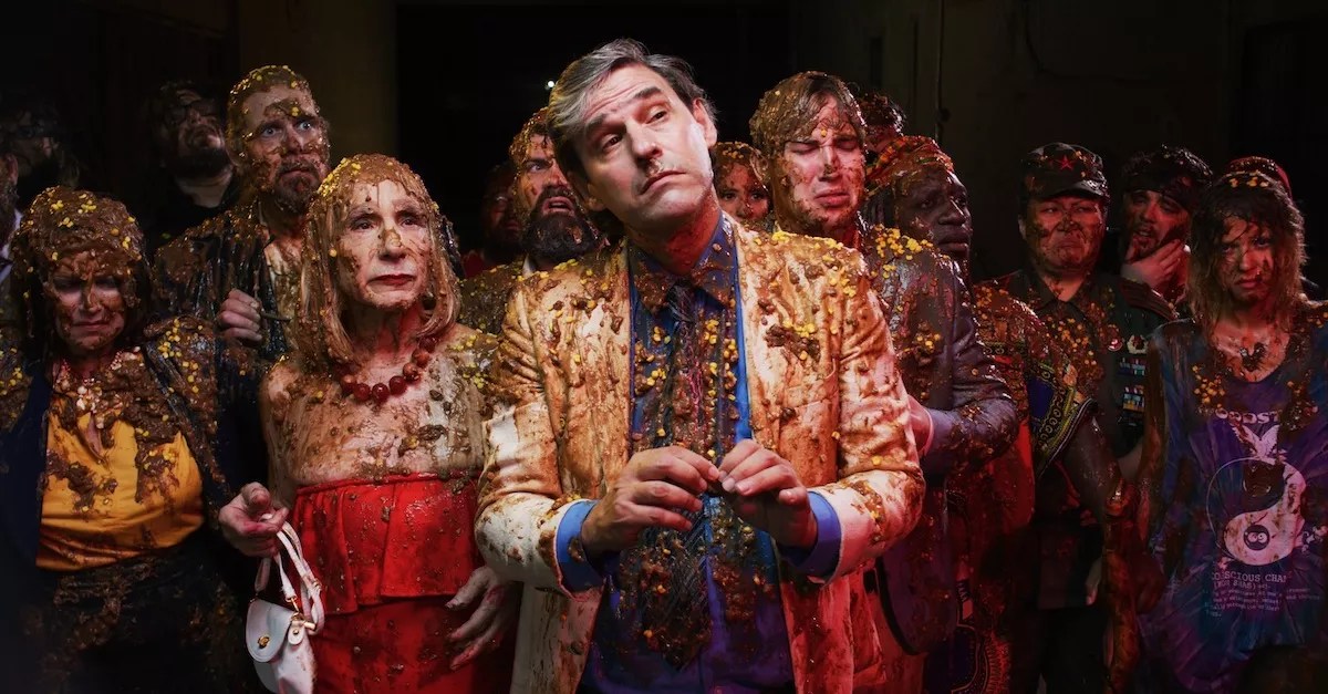 #ShakespearesShitstorm is a musical retelling of William Shakespeare’s The Tempest in which Kaufman plays a modernized Prospero who’s banished to the storied land of Tromaville for daring to challenge the greedy, big pharma executives for raking in millions over opioid addiction. However, instead of conjuring a storm of sea water, Kaufman’s Prospero conjures a storm of white shit to smite his shipwrecked enemies.