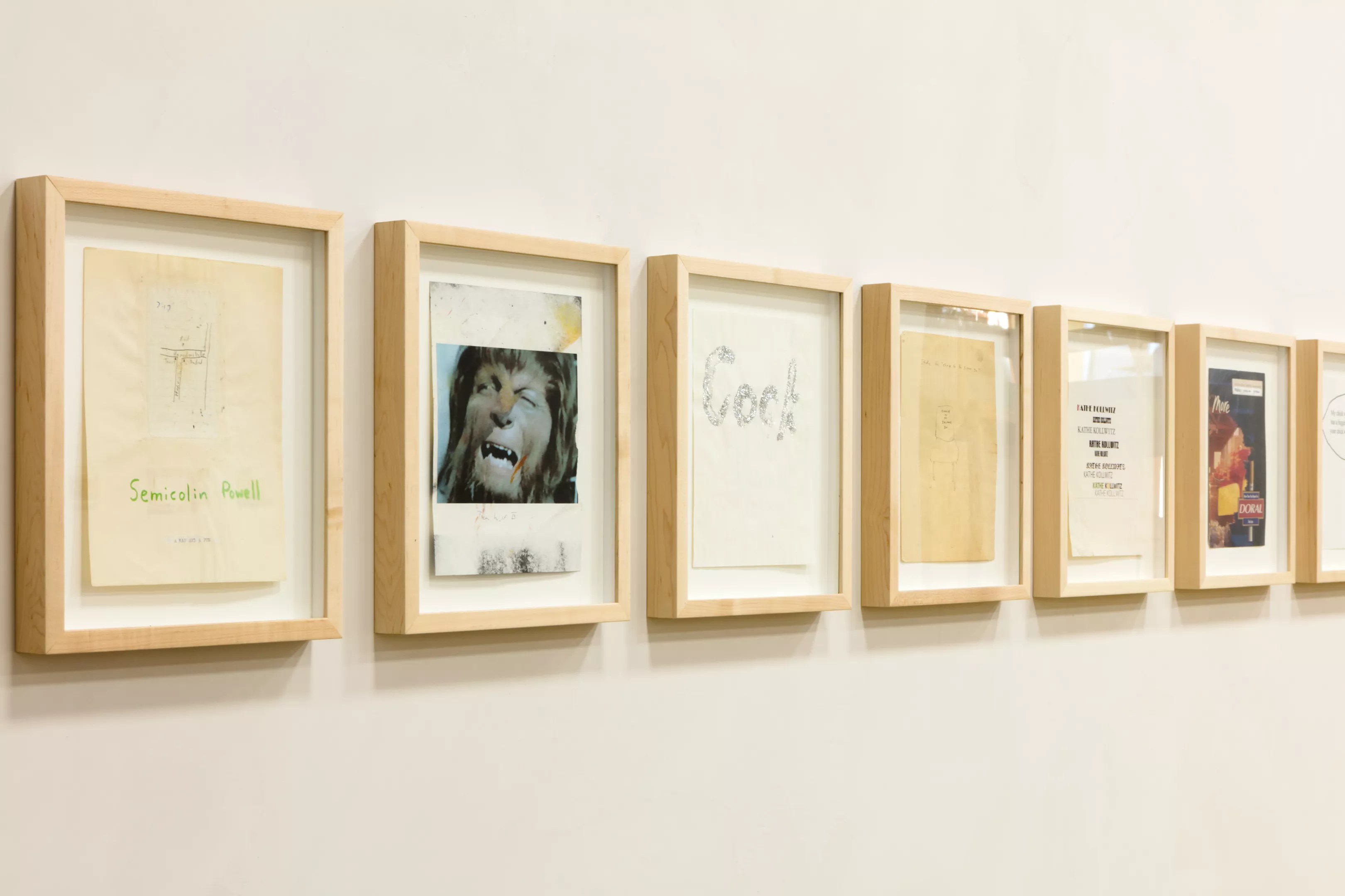 Mitchell chose the 24 drawings on view at The Box Company from about 150 drawings Schwarz had in his studio. (Of course, there are a couple hundred more floating around in collectors’ homes.) Schwarz also had quite a few collages of product packaging for Mitchell to choose from.