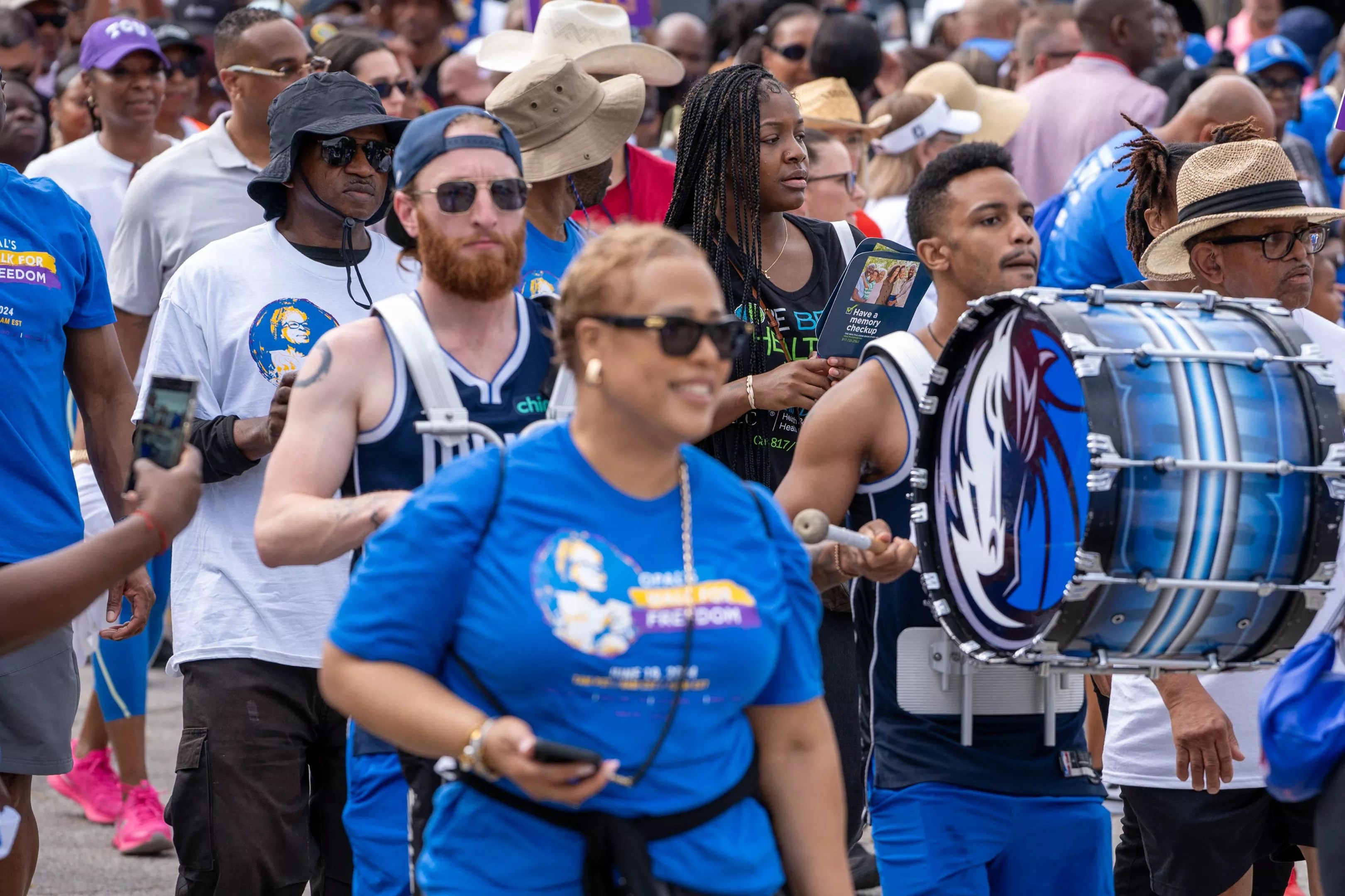 The Dallas Mavericks drummers and cheerleaders joined the walk.