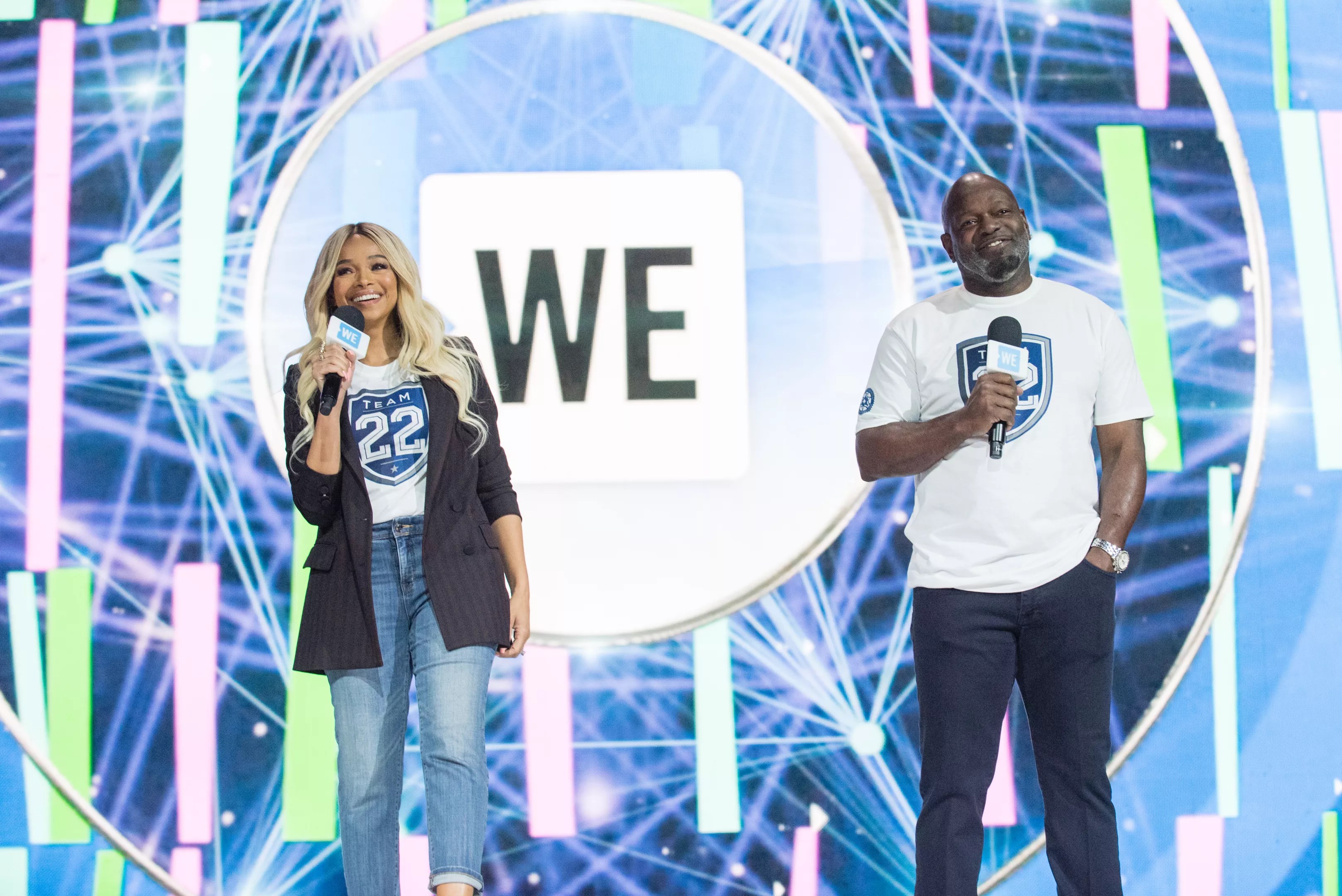Pat and Emmitt Smith offered some inspiring words for a crowd of kids at the WE Day Celebration on Tuesday.
