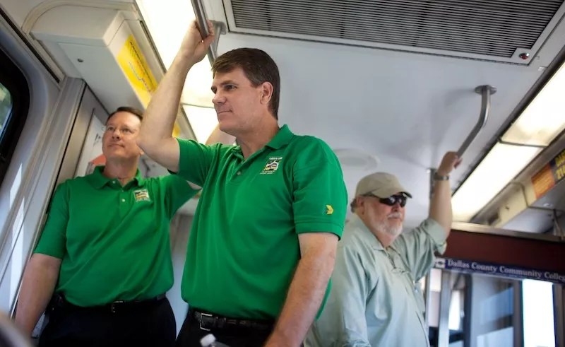 The Real Cop shows up after the guy who stole The Intern’s bag is long gone because that’s how everything works always. He’s large, imposing, but his uniform says DART on it, so you show him your ticket. He gets offended, like it’s insulting to think he’s the ticket-checker person. Who is the person that checks tickets on this thing? Are they mythical, like unicorns or Minotaurs or minority Trump supporters? We buy a ticket every day for this train and no one checks it. Ever. If we see someone with any collection of the four letters in DART on their chest, we’re showing them the ticket to prove we did it and we exist. Anyway, thank The Real Cop for his service. All heroes don’t wear capes, but some do wear shades after the sun’s gone down.