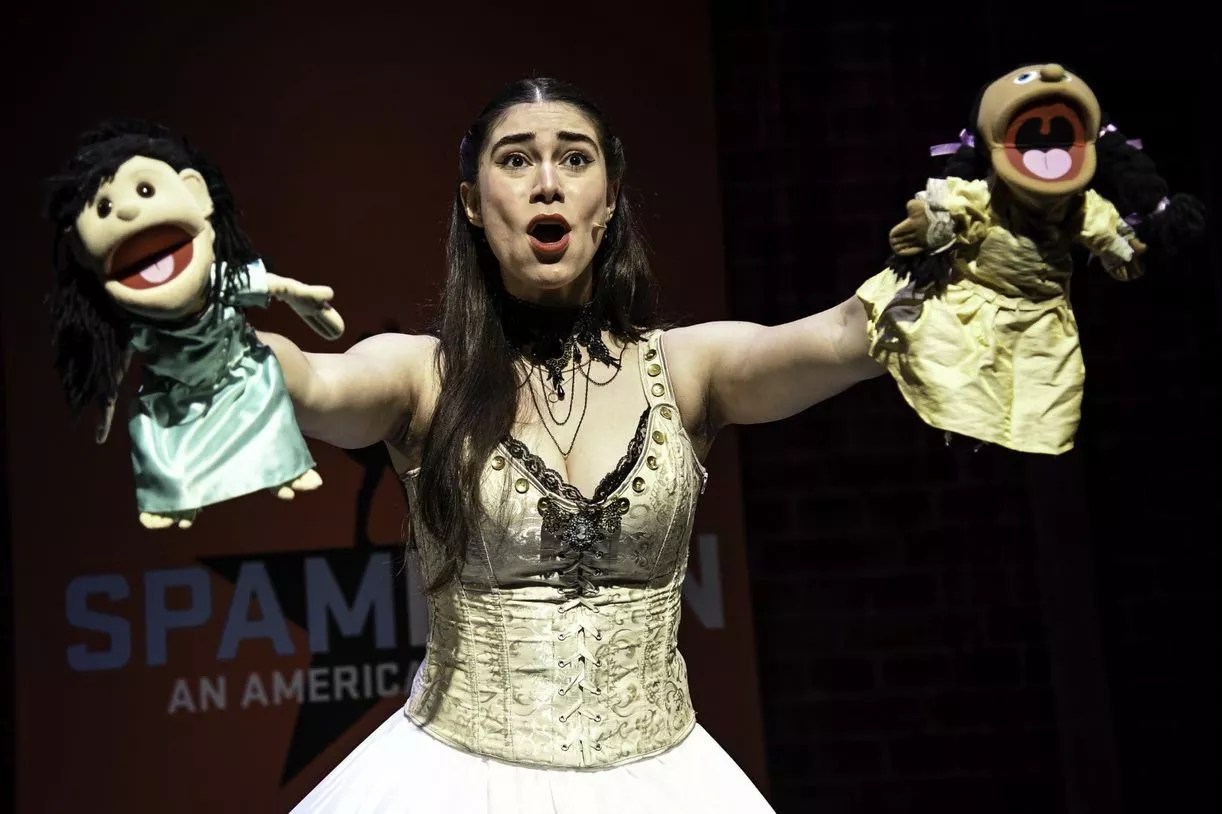 Paloma D’Auria presents a puppet performance as the Leading Ladies in an Avenue Q-inspired spoof in the Broadway musical parody Spamilton: An American Parody.