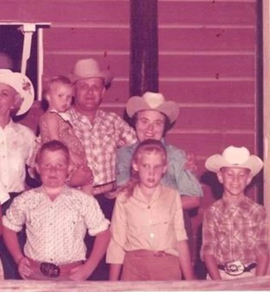 Back row: J.W. Sanderson, holding his daughter Sally, and Eula Mae Sanderson. Front row: Bill Sanderson, Patti Gibbs and Dennis Geddie.