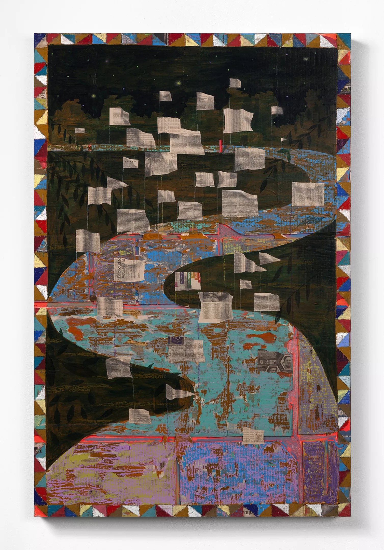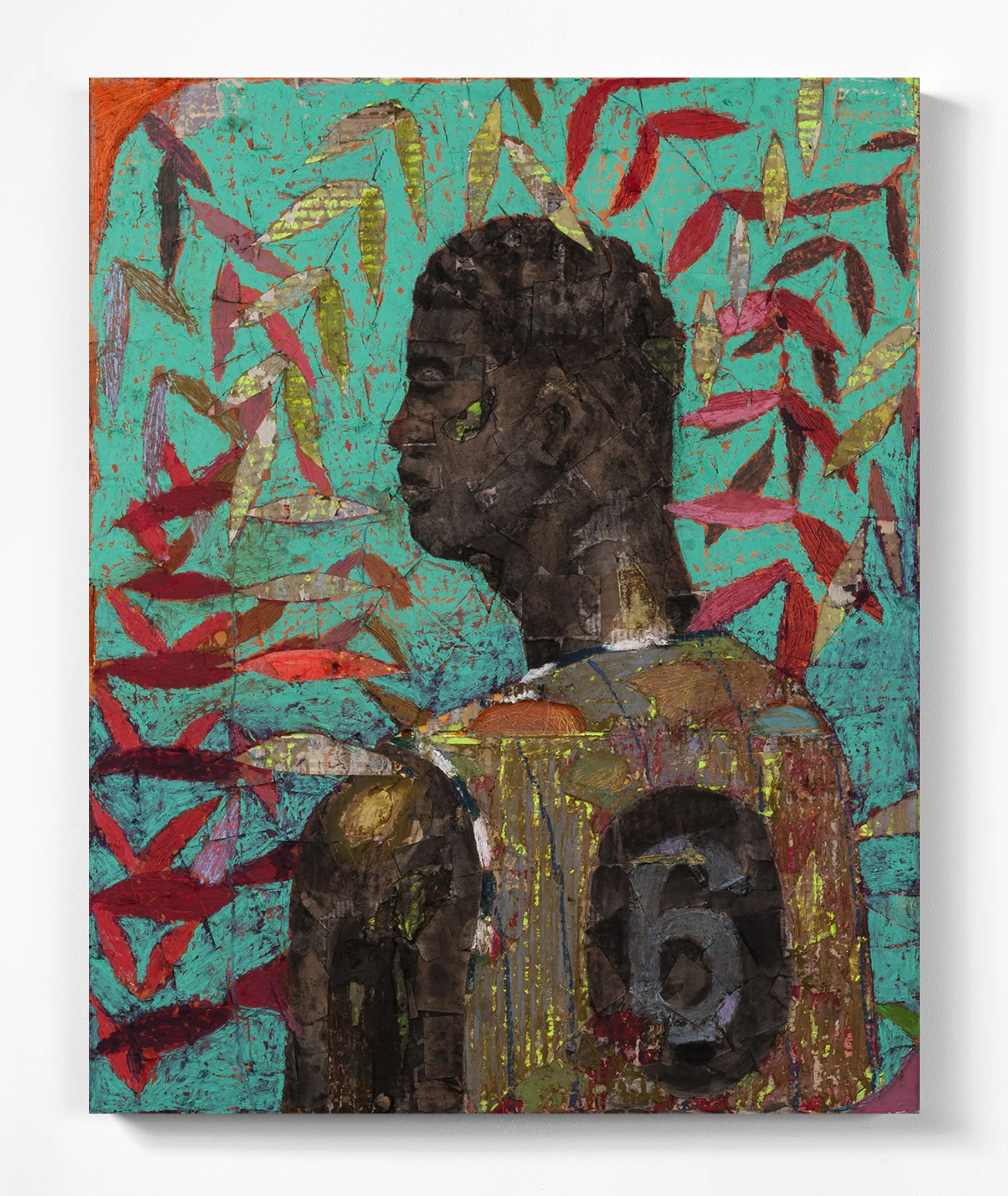 Derek Fordjour, “No. 73” (2017) and “What will you do to help us Win?” (2017)