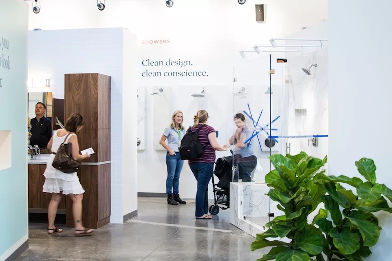 The mission statement painted on the wall reads: “We exist to make homes beautiful, healthy and sustainable. For everyone.”