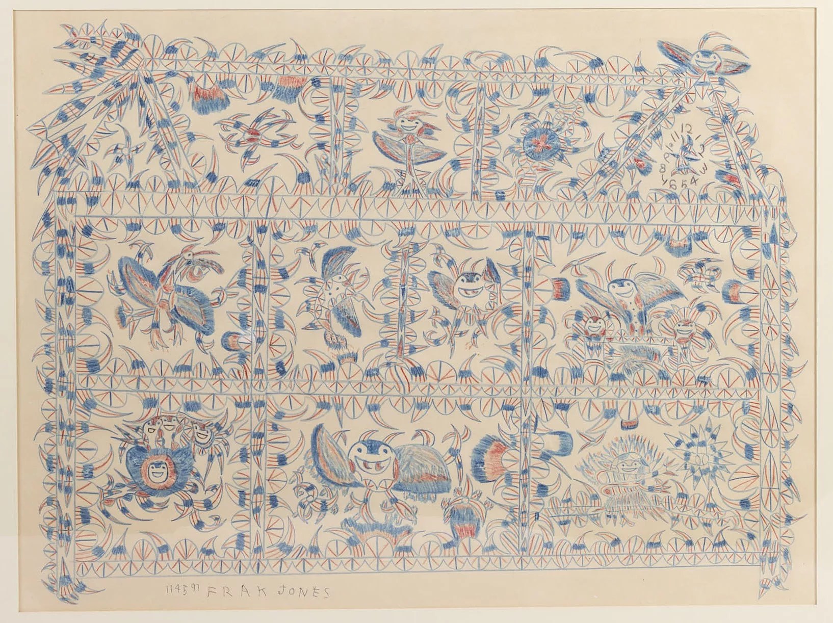 Jones started making paintings late in life – he was in his 60s, and the drawings represented what he saw in both his tangible and supernatural worlds. By drawing the devils inside the grid system, which was reminiscent of a prison cell block, “he was able to contain their powers over him,” says Wehnert.