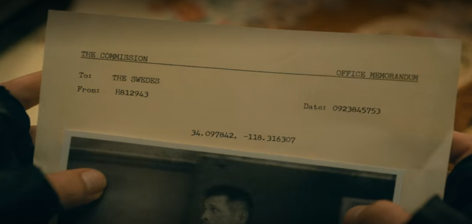 The coordinates given to The Swedes to find Diego, who is in Dallas, are that of Netflix’s own LA studio.