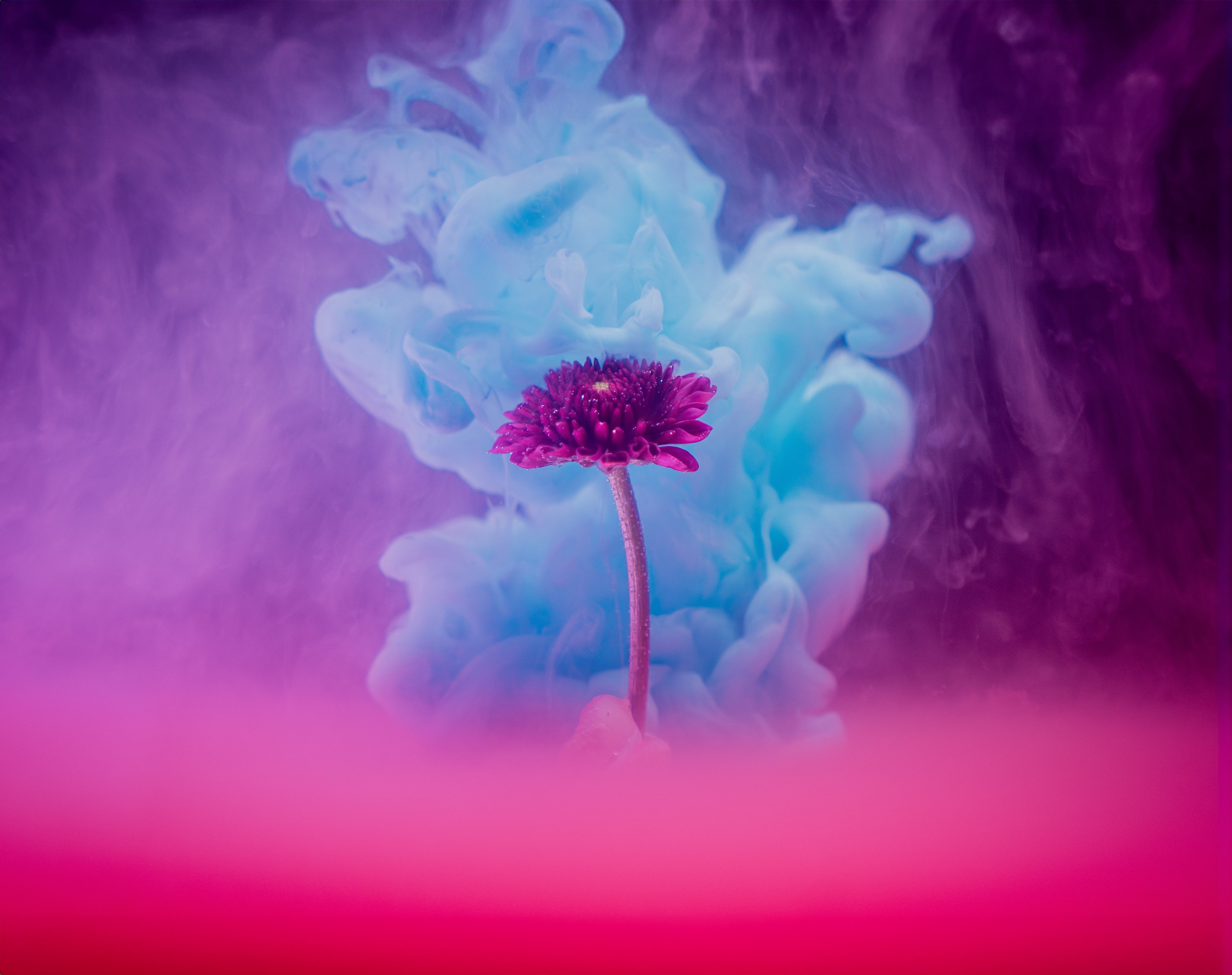 The exhibition’s other couple, Jessica Waffles and James B. Maker, went above and beyond to make their pieces wholly unique and immersive. Starting with a printed photo from Waffles, the couple added colorful, psychedelic with acrylic paint inside of 3D-printed frames. On top of that, each of their 10 pieces is directly inspired by a song and offers a QR code to a Spotify playlist where viewers can listen along and pair the sounds and sights.