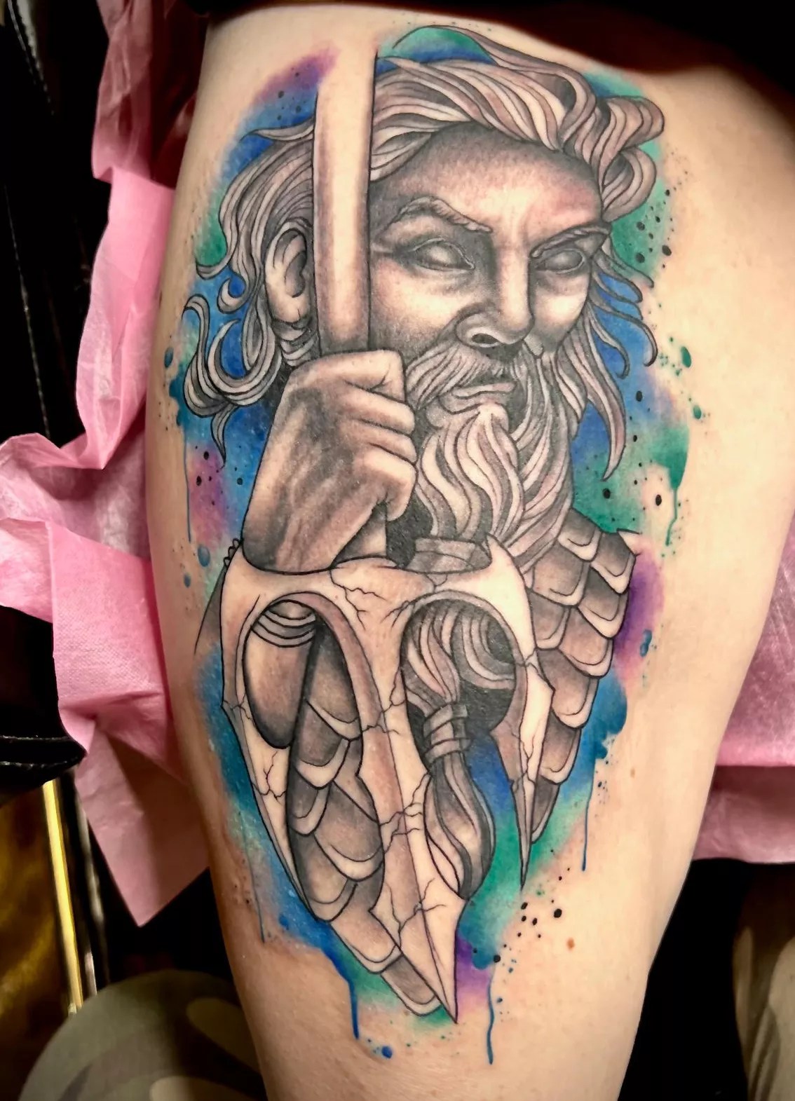 “One of the most unique tattoos I’ve gotten to do recently is a watercolor Poseidon. I love combining different styles in one tattoo.”