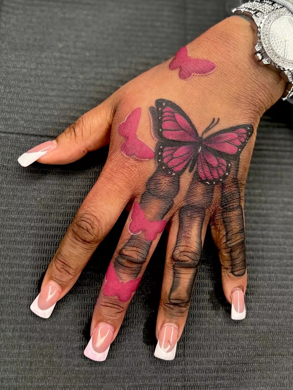 “Most definitely my butterfly/skeleton hand tattoos. For some reason, everybody loves those tattoos and they went viral on Facebook, Instagram and TikTok. And it seems like ‘tramp stamps’ are coming back into style. I’ve been getting a lot of those.”