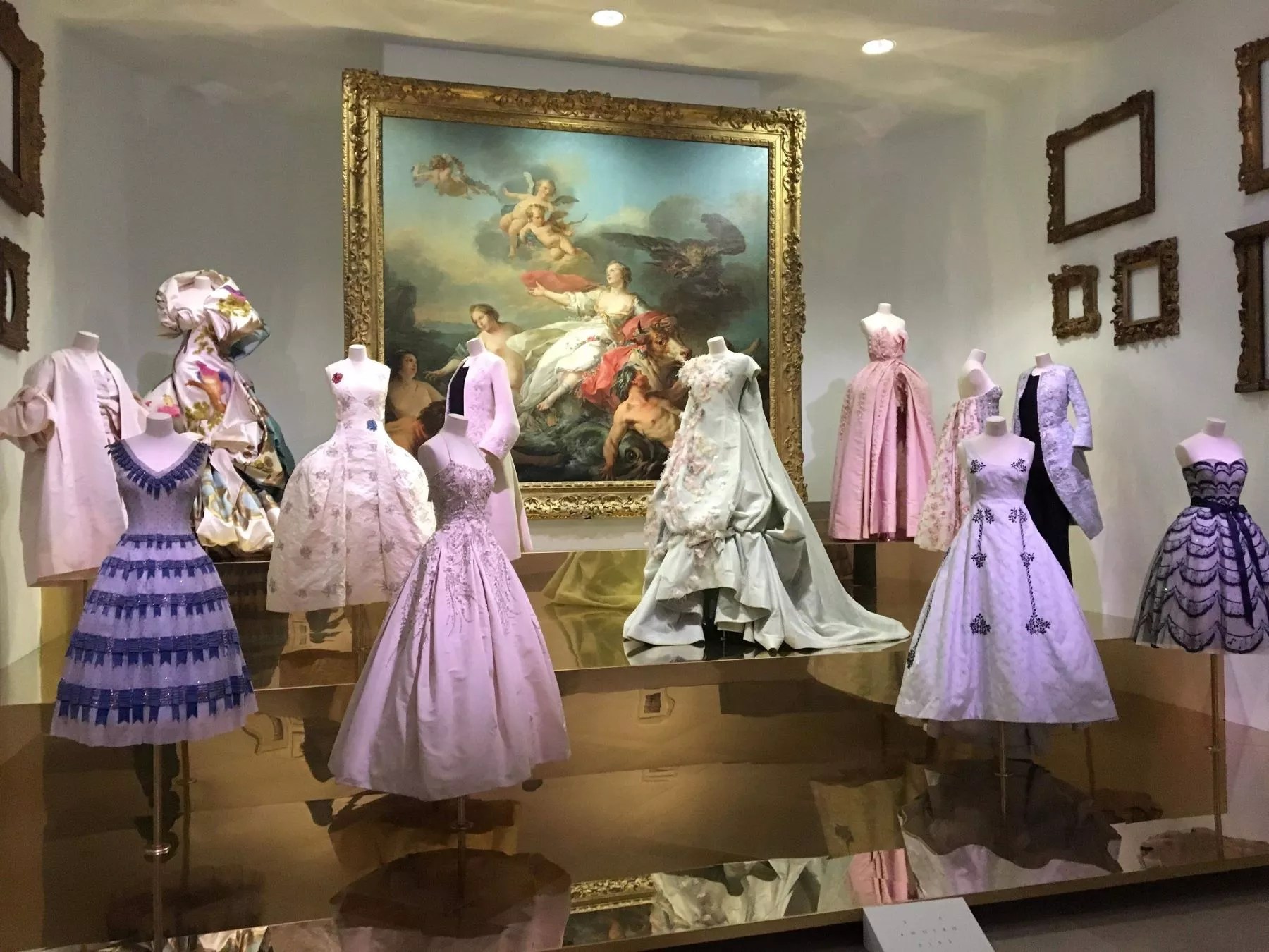 The rooms are carefully curated to highlight the exquisite craftsmanship of the house’s various artistic directors, including renowned designer Yves St. Laurent and the immediately recognizable touch of John Galliano. The pieces are paired with the museum’s own art, complementing the style and times displayed in each section, showing the progression of fashion and creativity applied through the eras, from coquettish 1940s garbs through the bold 1980s, and samples from the newest collections.