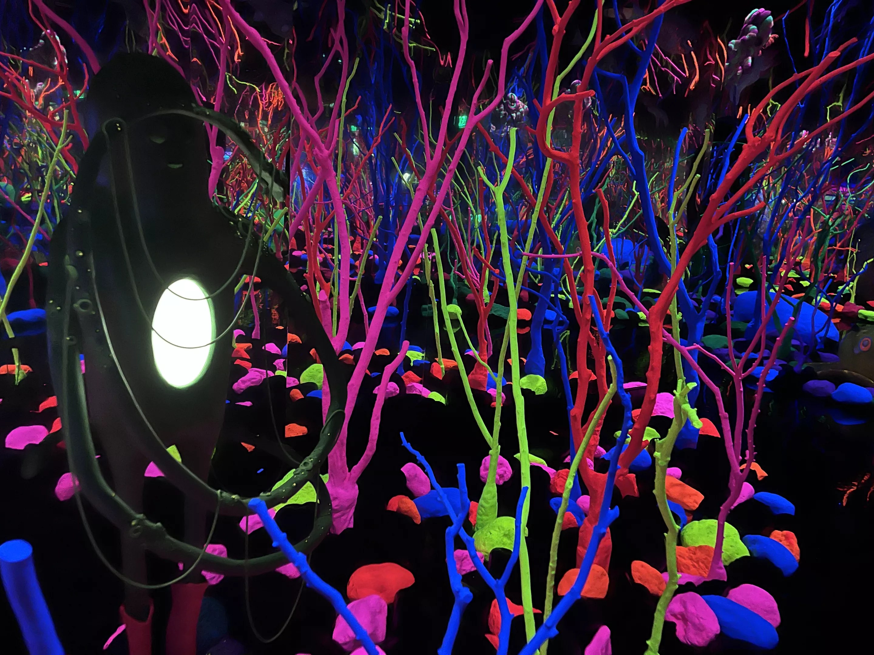 This neon seascape has more than one entrance, including one that requires you to set aside any claustrophobic tendencies you have in order to access it. Once you enter, you start to get a real sense of the playfulness that the artists are allowed to express. This space of glowing plant life and unusual creatures is a great appetizer to the overall theme, but it also has connections to the more mundane aspects in ways that require an eagle’s eye to find them. We’re not gonna reveal exactly what those connections are or parts of the story they may entail. Plus, it’s more fun if you discover them on your own.