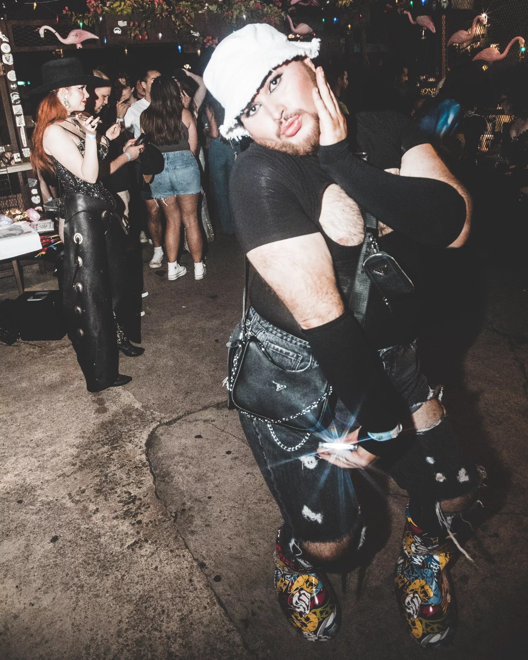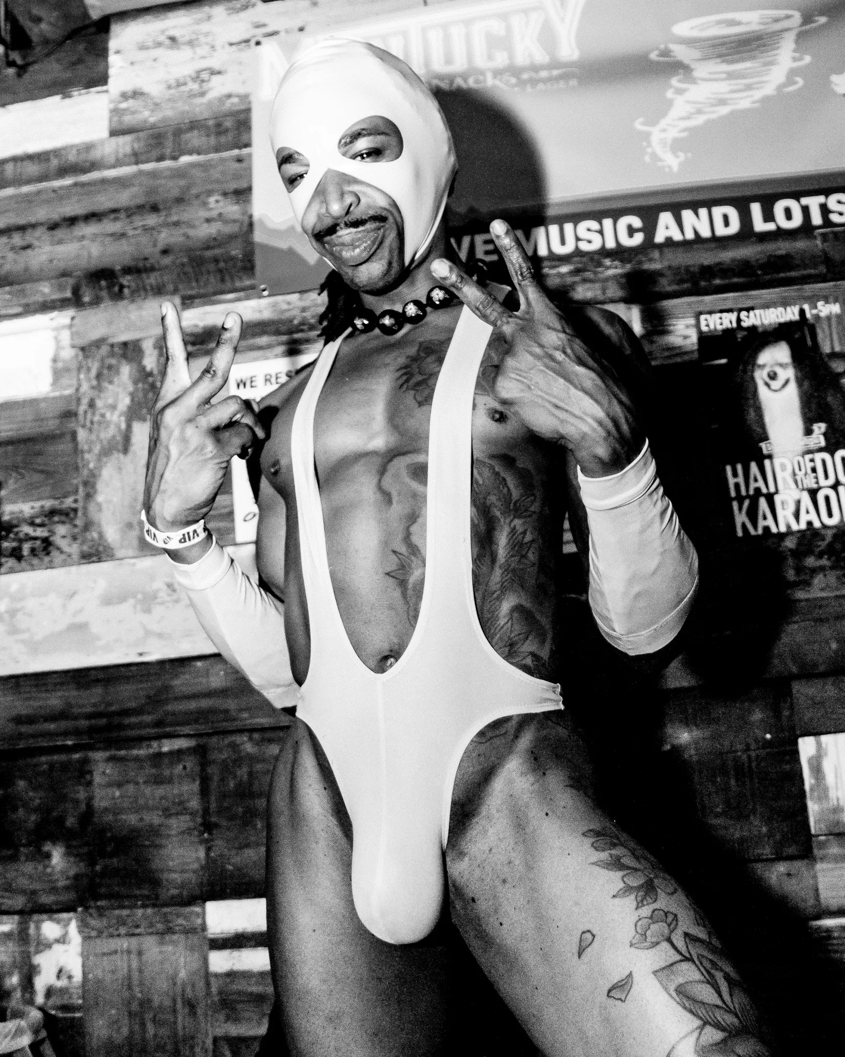 Drag Queen @brigittebandit showing her commitment to her art form at the Double Wide.