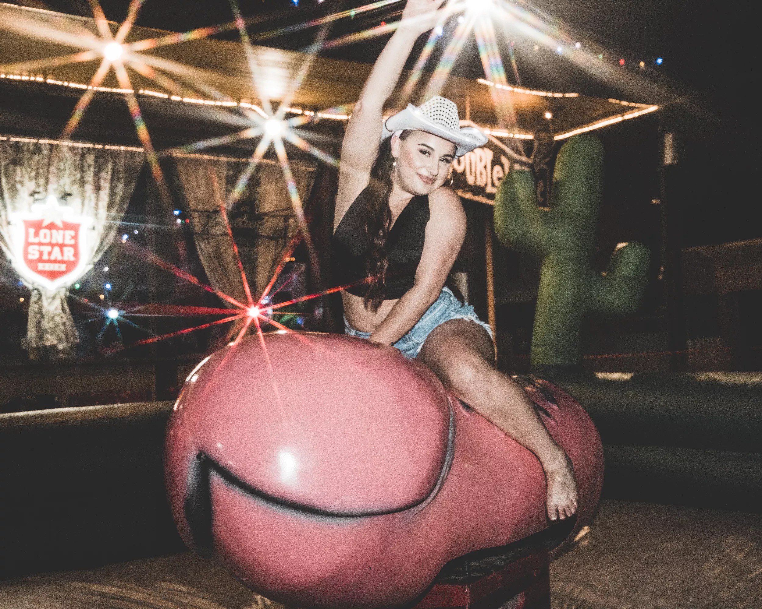 Cowboy hats and gimme caps joined teased-up ‘dos at the Double Wide.