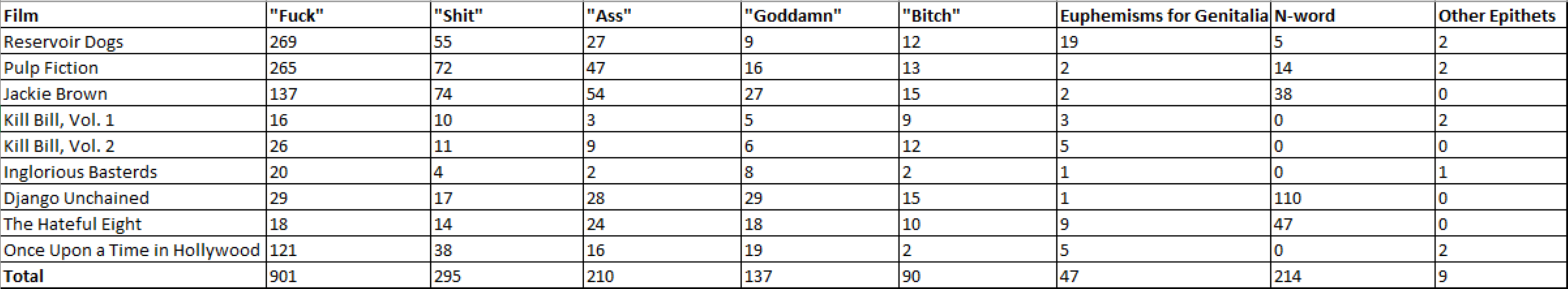 They call journalism the “fourth pillar of democracy,” and while it can and should hold powerful individuals accountable, the profession hasn’t exactly answered the one question that is truly on everybody’s mind: How many curse words do each of Quentin Tarantino’s movies use?