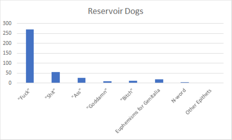 In looking at these numbers, you may notice an impressive amount of restraint on Tarantino’s part. Saying “fuck” only 16 times is what Tarantino would do while giving a toast at a wedding.