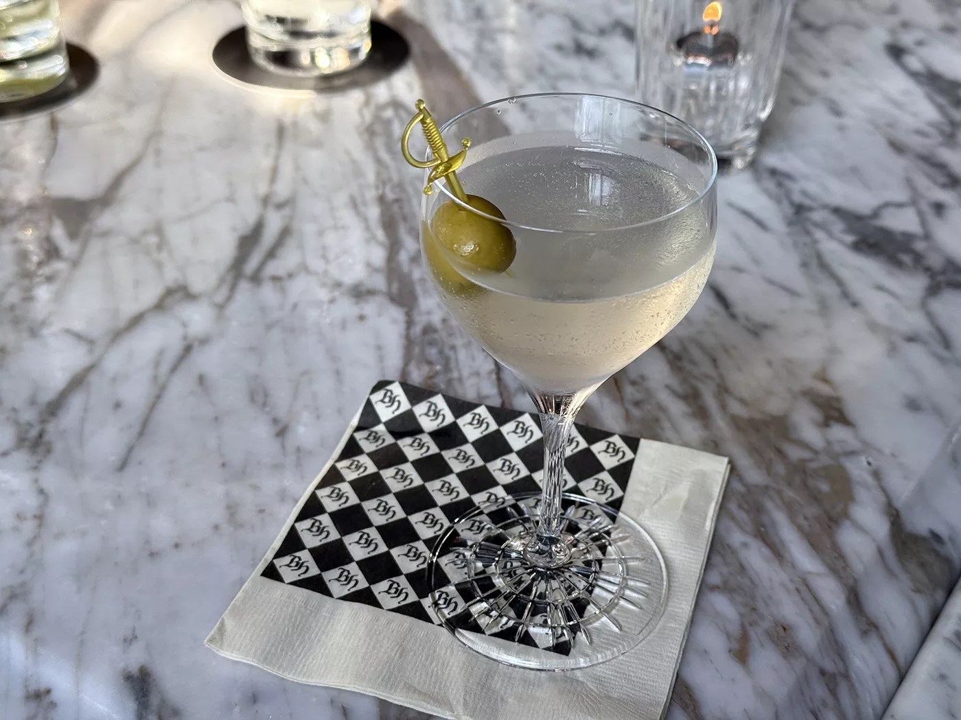 Pro tip: Amp up the filth with a steep pour of brine and an extra trio of regular olives for variety.