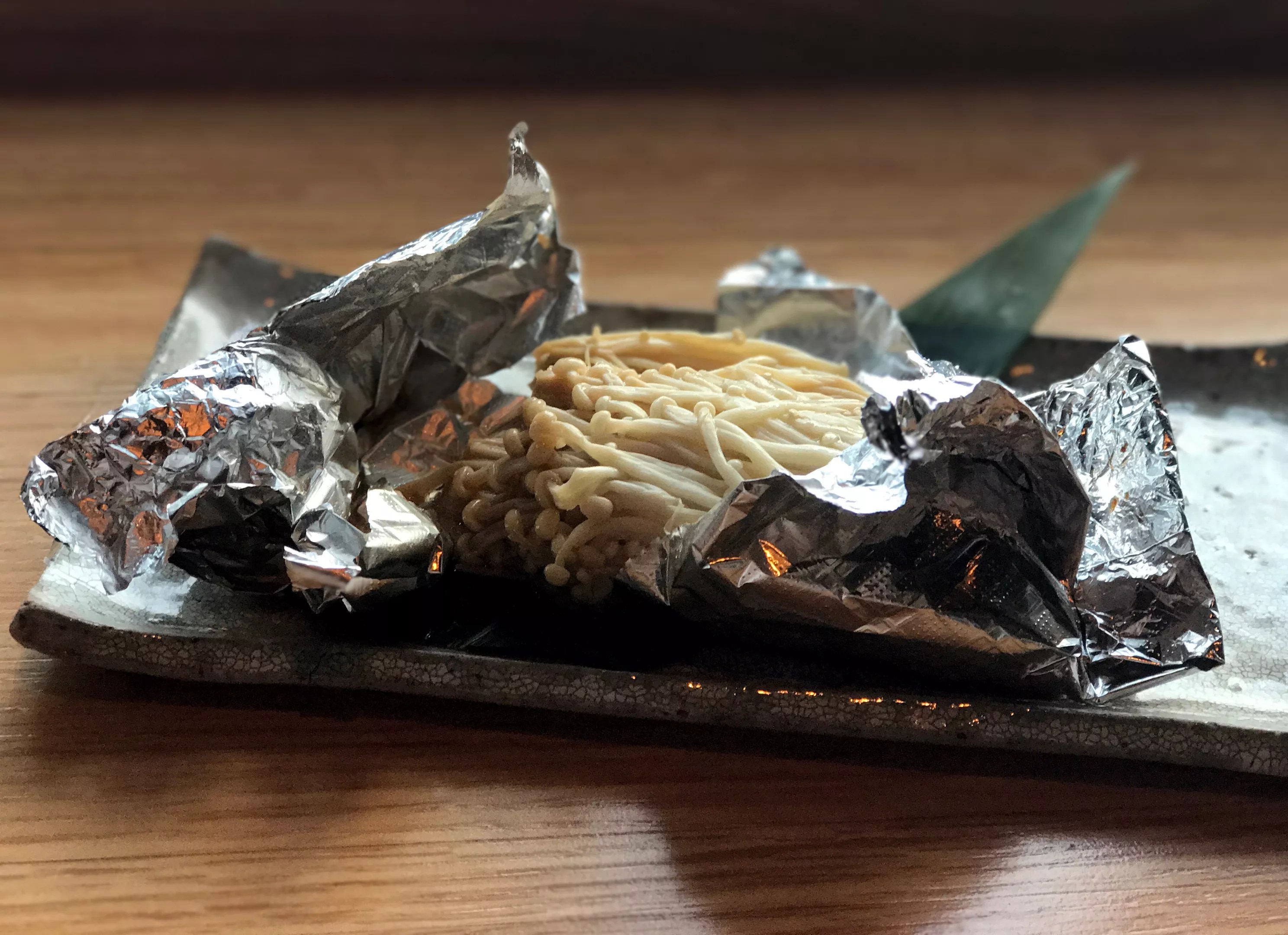 It didn’t take long to home in on something curious: the $7 Enoki Parcel, a grilled pouch of enoki mushrooms slathered in truffle butter.