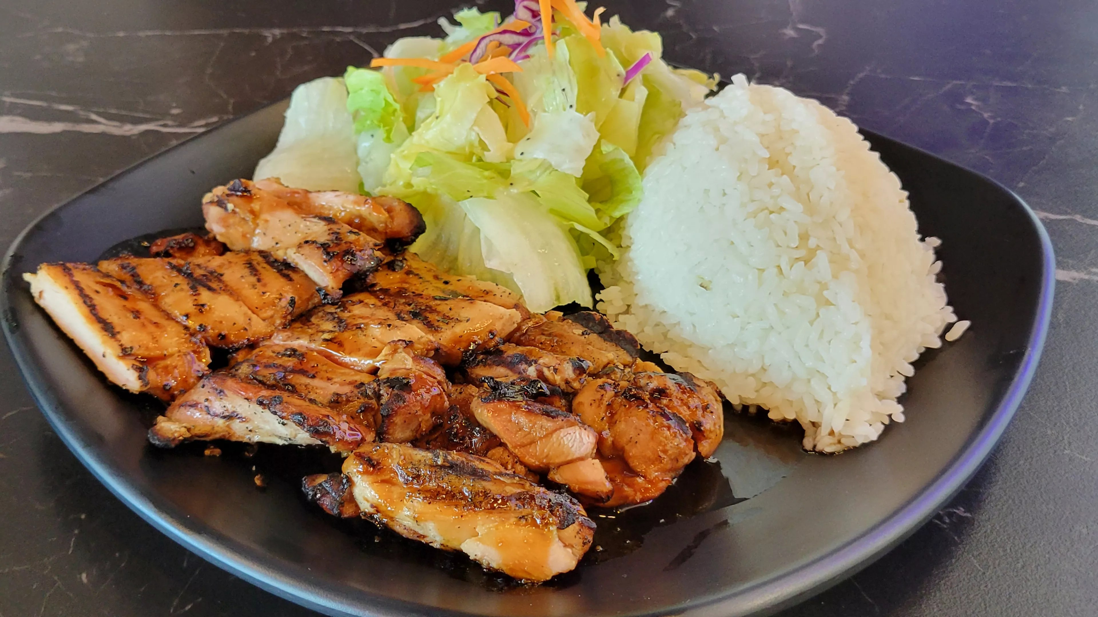 The chicken teriyaki is doused (twice) in a house-made sauce.