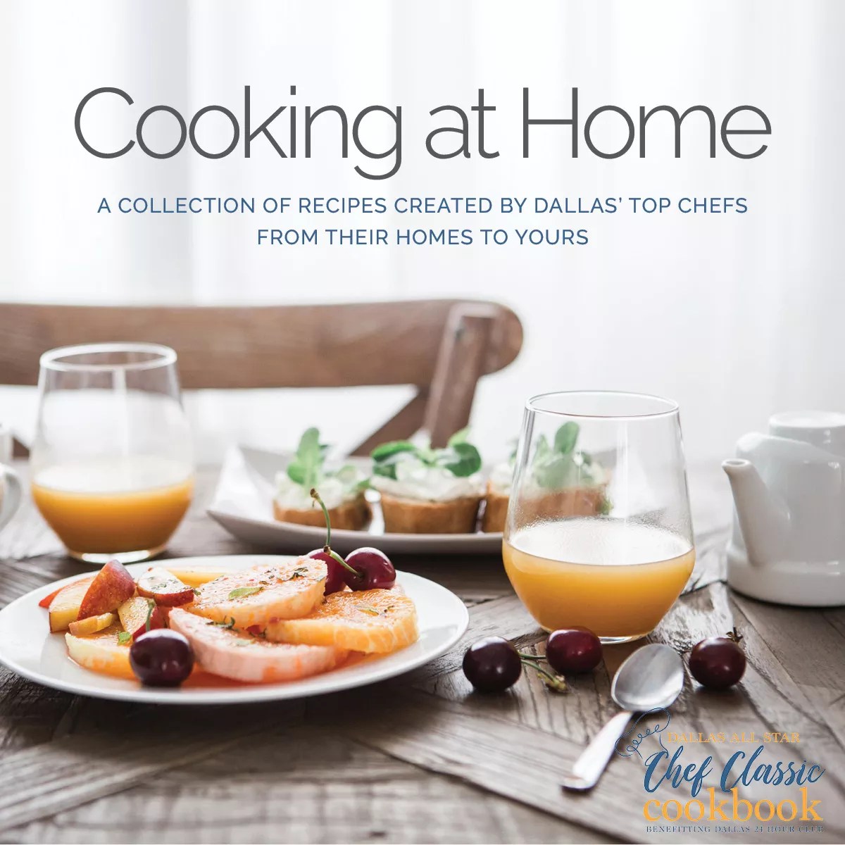 Cooking at Home: A Collection of Recipes Created by Dallas’ Top Chefs from Their Home to Yours, includes recipes from chefs for people to make at home.