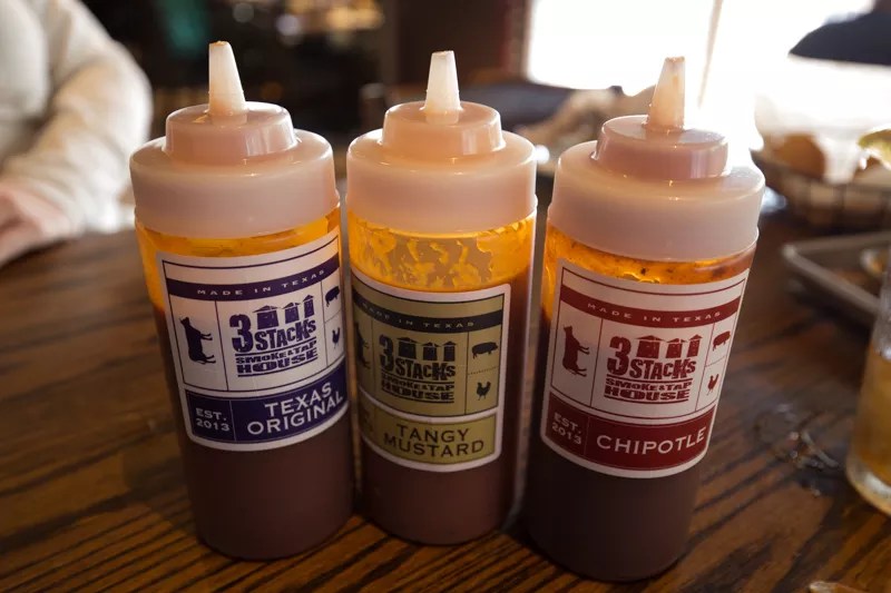 3 Stacks provides three sauce varieties for every table. Diners will likely become intimately familiar with them all.