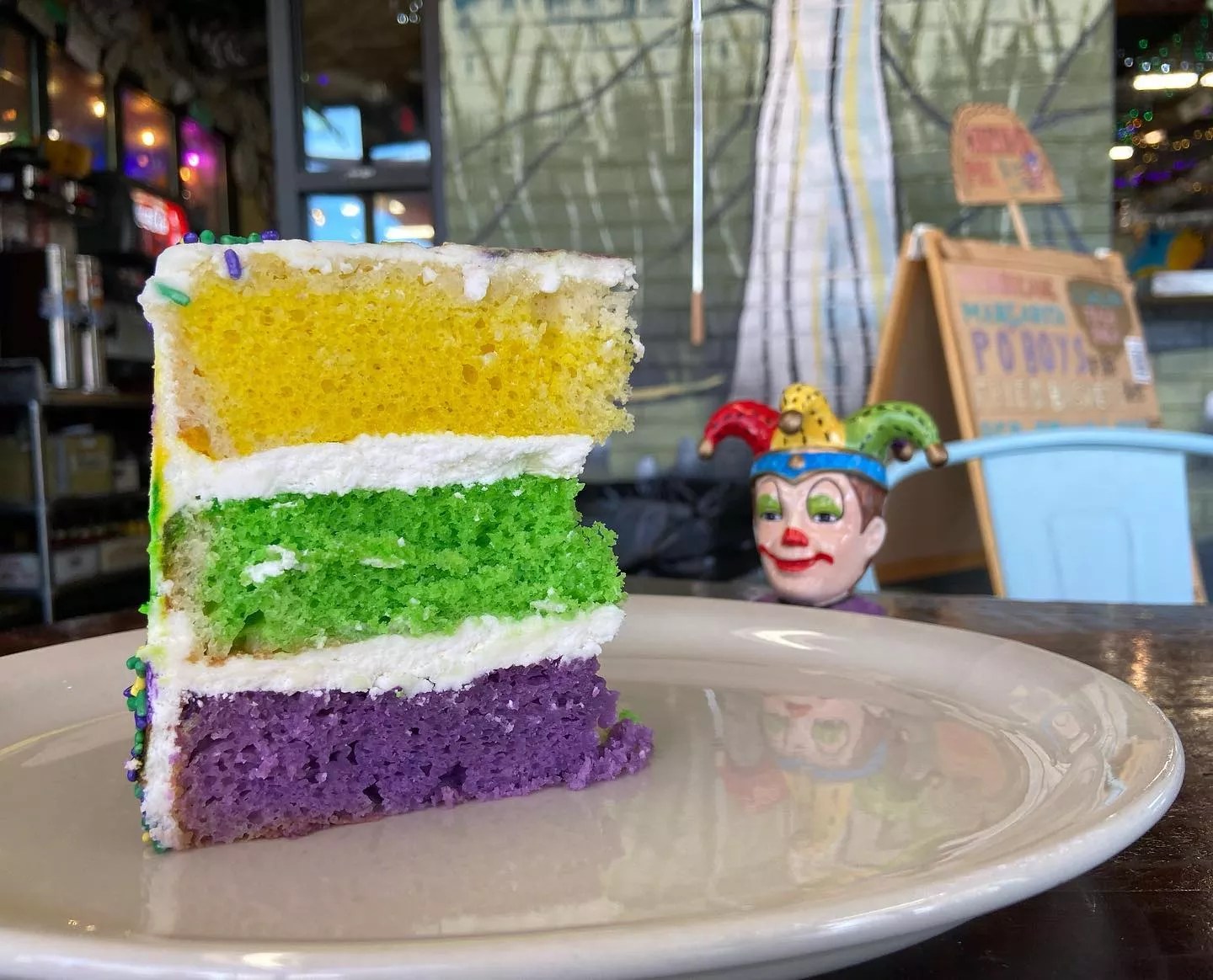 Every day is a trip to the Big Easy at Les Bon Temps. Serving some of the best beignets and café au lait west of New Orleans, this is a great place to stop by before heading to your Mardi Gras celebration for an authentic taste of Louisiana. For Mardi Gras, they have Mardi Gras Parade Beignets, which is a king cake-stuffed beignet, a pancake beignet and a creole cinnamon beignet. They will also have king cake ice cream, hurricane tea and a king cake coffee float. And the great news is that these Mardi Gras treats will be available until March 15.