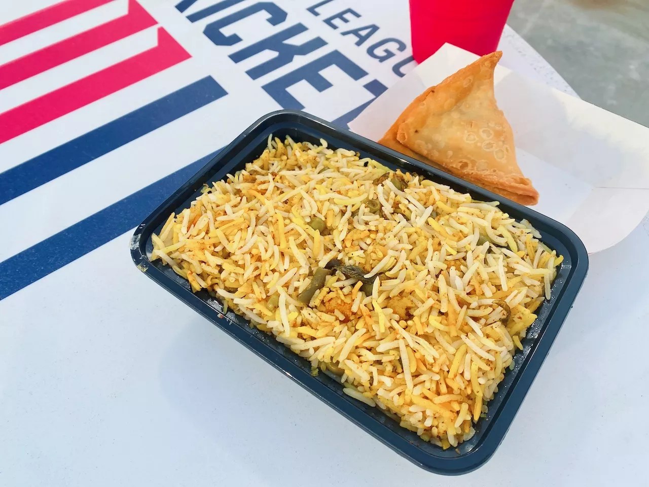 The biryani at Grand Prairie Stadium is a six (like a homerun).