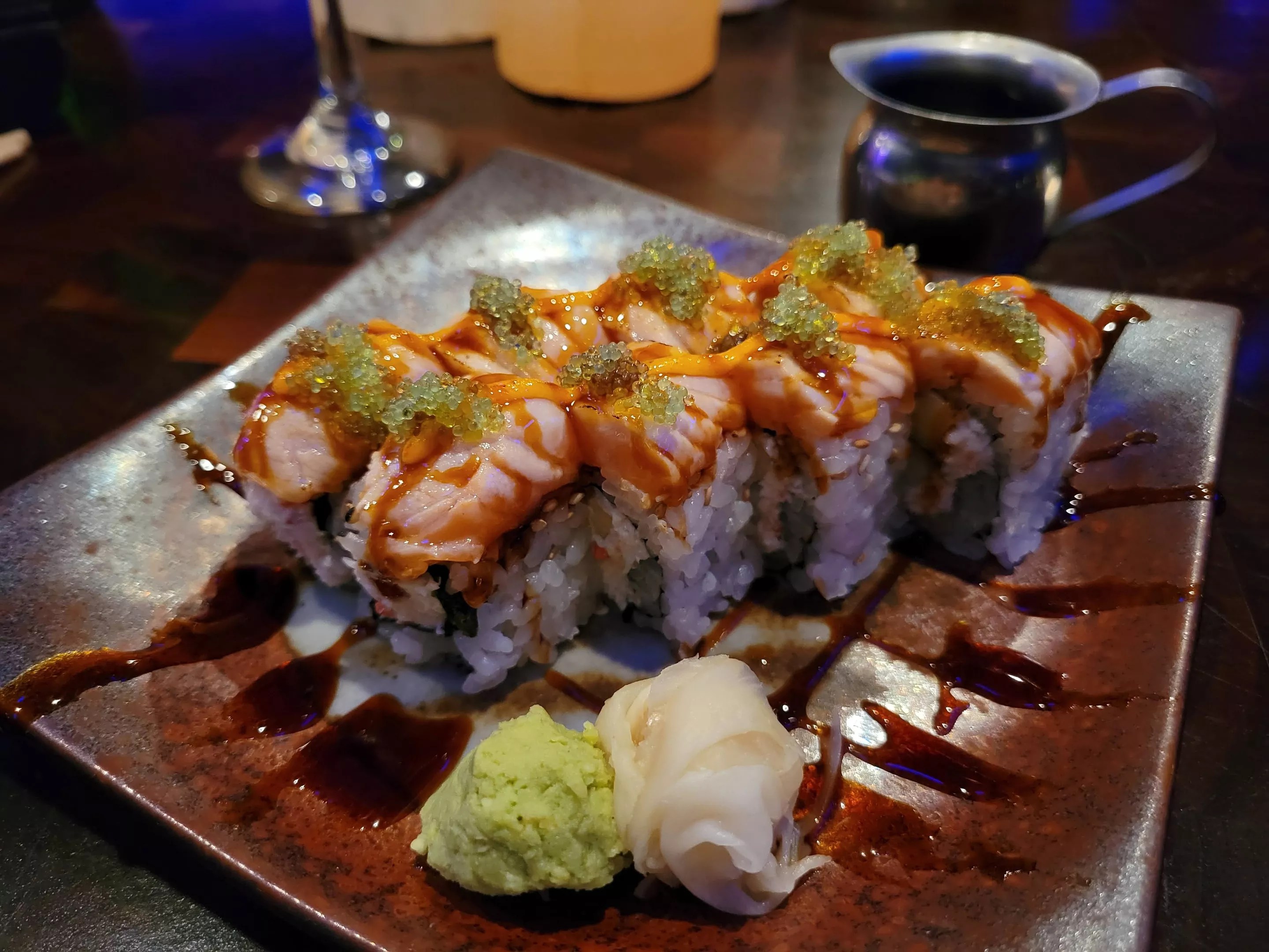A great sushi roll is a lot like a great grilled piece of meat; if it’s done properly you don’t have to add any performance-enhancing sauces and can eat straight from the kitchen. The mango crab roll consisted of snow crab, mango, cucumber, salmon, which all worked harmoniously together.