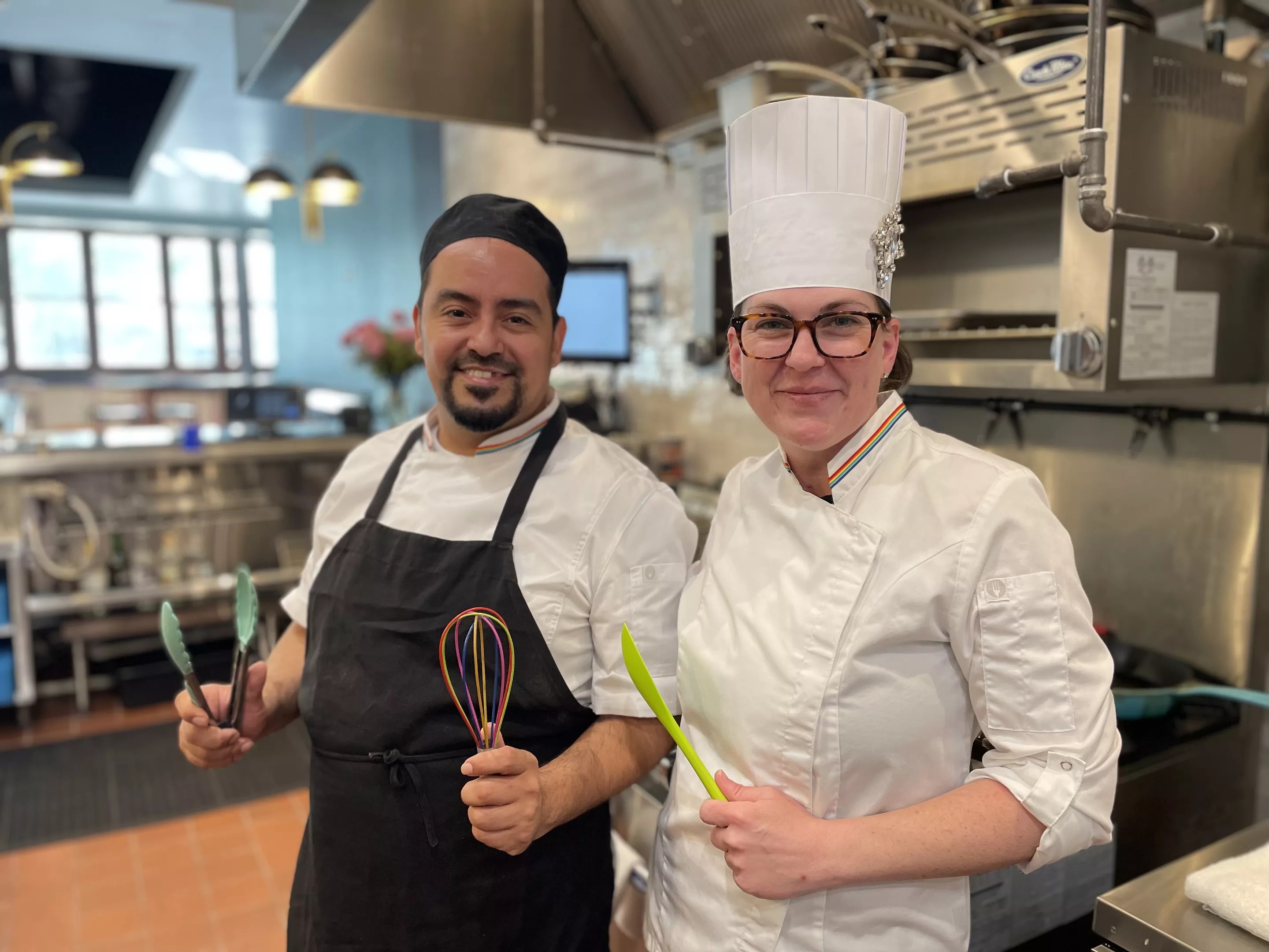 Sous chef Luis Lara and executive chef Sharina Hassell in Alexadre’s new kitchen.