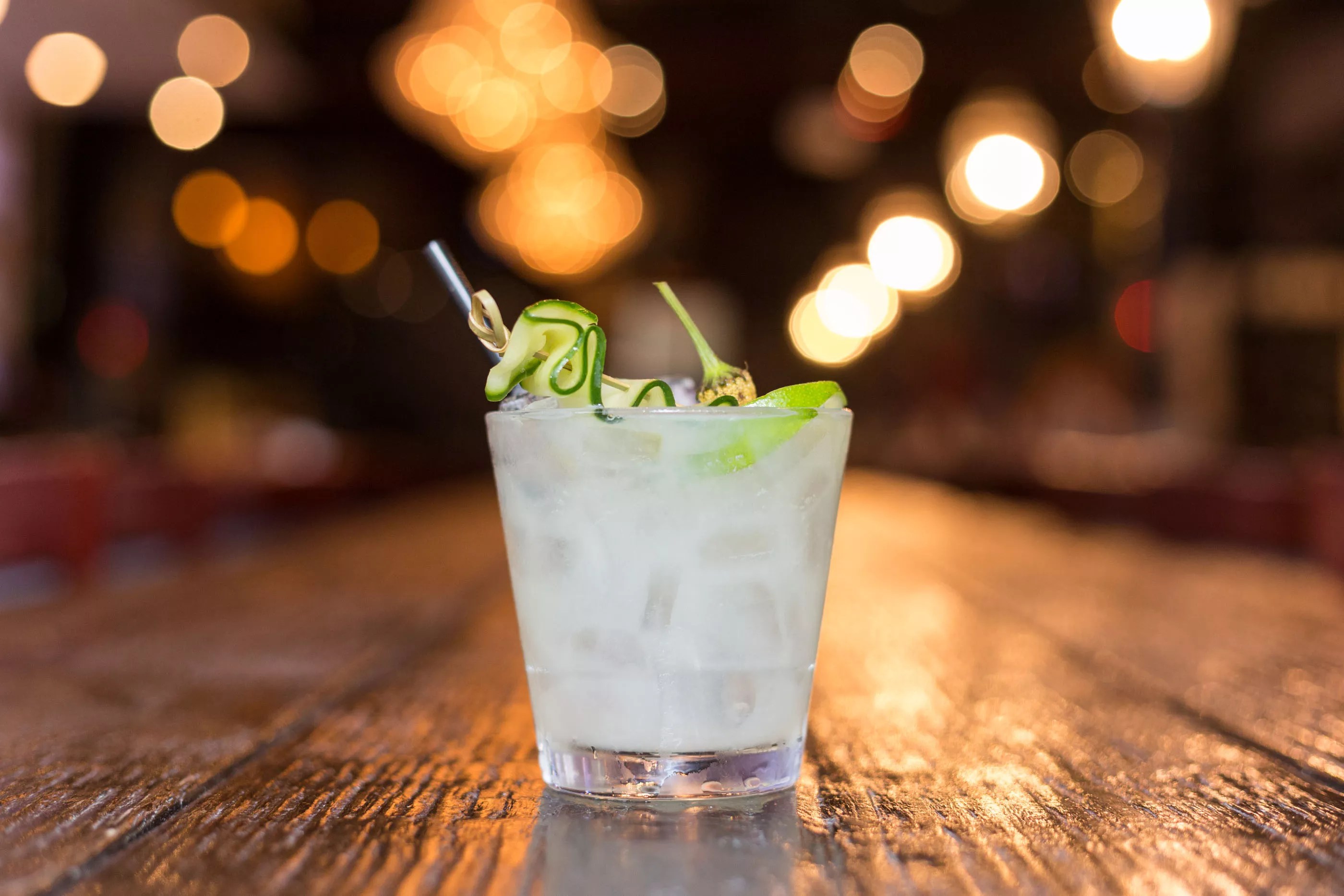 Henderson Cooler ($10 cocktail + $3 optional Szechuan Button): Tanqueray Gin, St. Germain, Green Chartreuse, fresh-squeezed lime juice, muddled cucumber, Szechuan Button