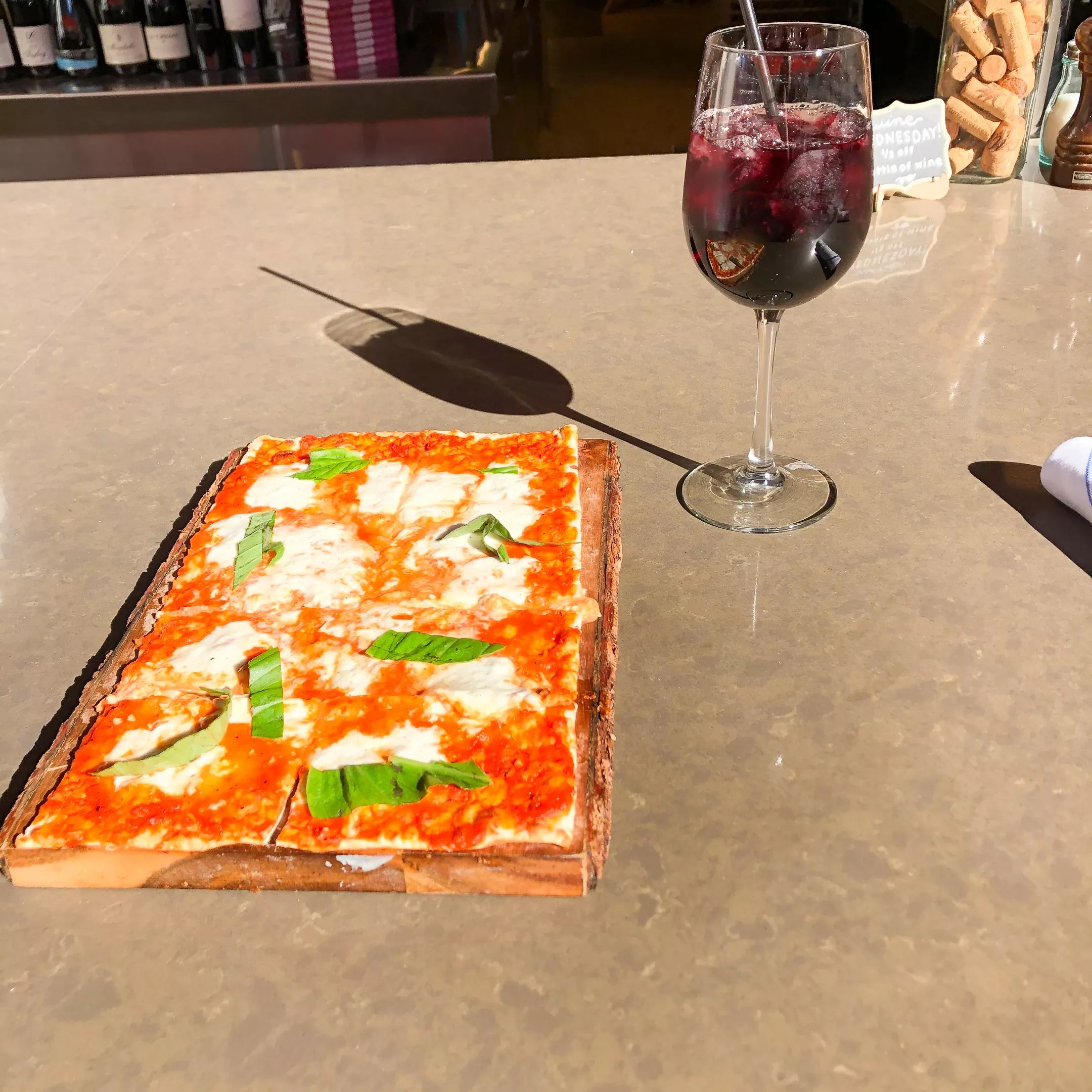 Items that can also be shared, but are easily suited for individual meals are the shrimp tacos ($9), served with a blue cheese slaw, pico de gallo and lime, as well as the Margherita flatbread ($8), a flatbread topped with spicy marinara sauce, burrata cheese and fresh basil.